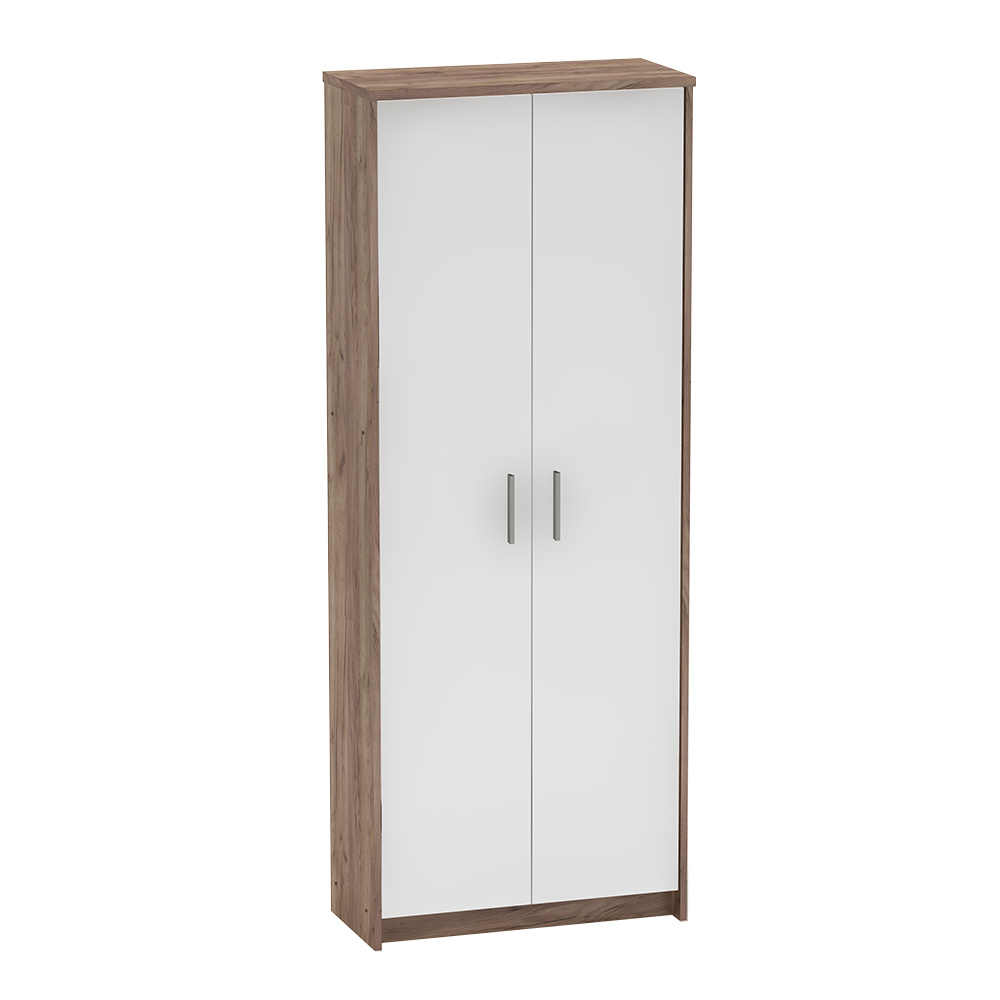 Kancelářská sestava JOHAN 2 NEW Materiál: DTD laminovaná Barva: kraft dunkel/bílá Rozměry psacího stolu (ŠxHxV): 150x67,5x73,5 cm Rozměry psacího stolku s vysouvací částí (ŠxHxV): 100x67,5x73,5 cm Rozměry rohového stolku (ŠxHxV): 67,5x67,5x73,5 cm Rozměry kontejneru (ŠxHxV): 39x40,5x55 cm Rozměry z nízkého regálu (ŠxHxV): 72,5x33,8x115,5 cm Rozměry z vysokého regálu (ŠxHxV): 72,5x33,8x186 cm Rozměry skříně (ŠxHxV): 72,5x33,8x186 cm Tloušťka materiálu: 16/22 mm ABS hrany Slovenský výrobek Dodávané v demontu