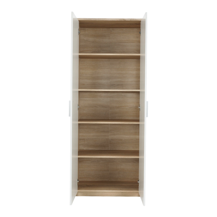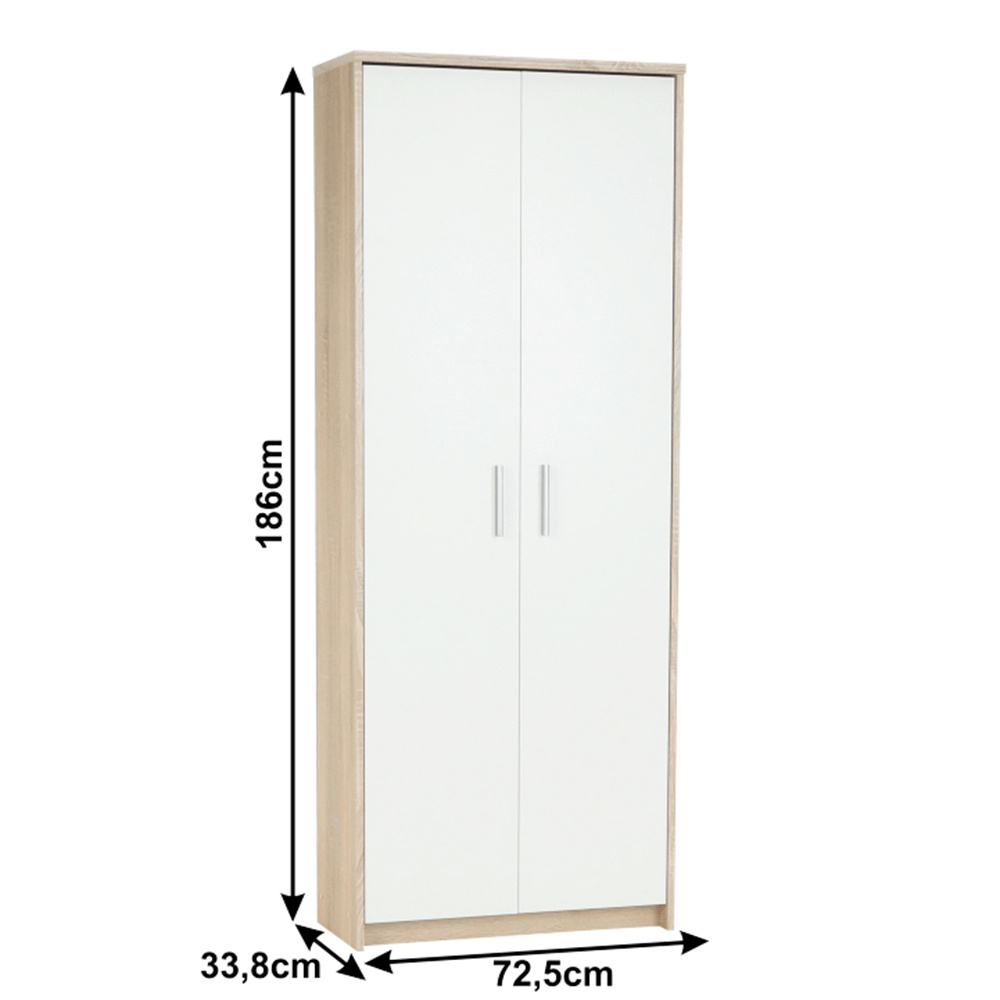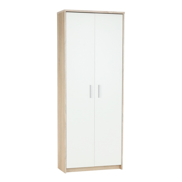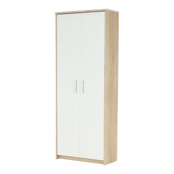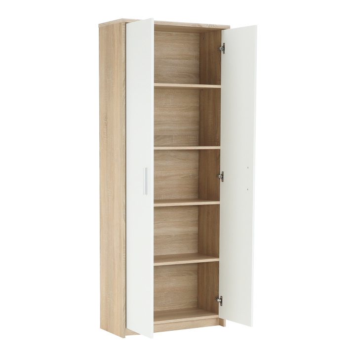 Kancelářská skříň JOHAN 2 NEW 05 s dvířky barevné provedení: dub sonoma / bílá materiál: DTD lamiovaná / ABS hrany Rozměry (ŠxHxV): 72,5x33,8x186 cm Tloušťka materiálu: 16/22 mm Policová slovenský výrobek Dodávané v demontu