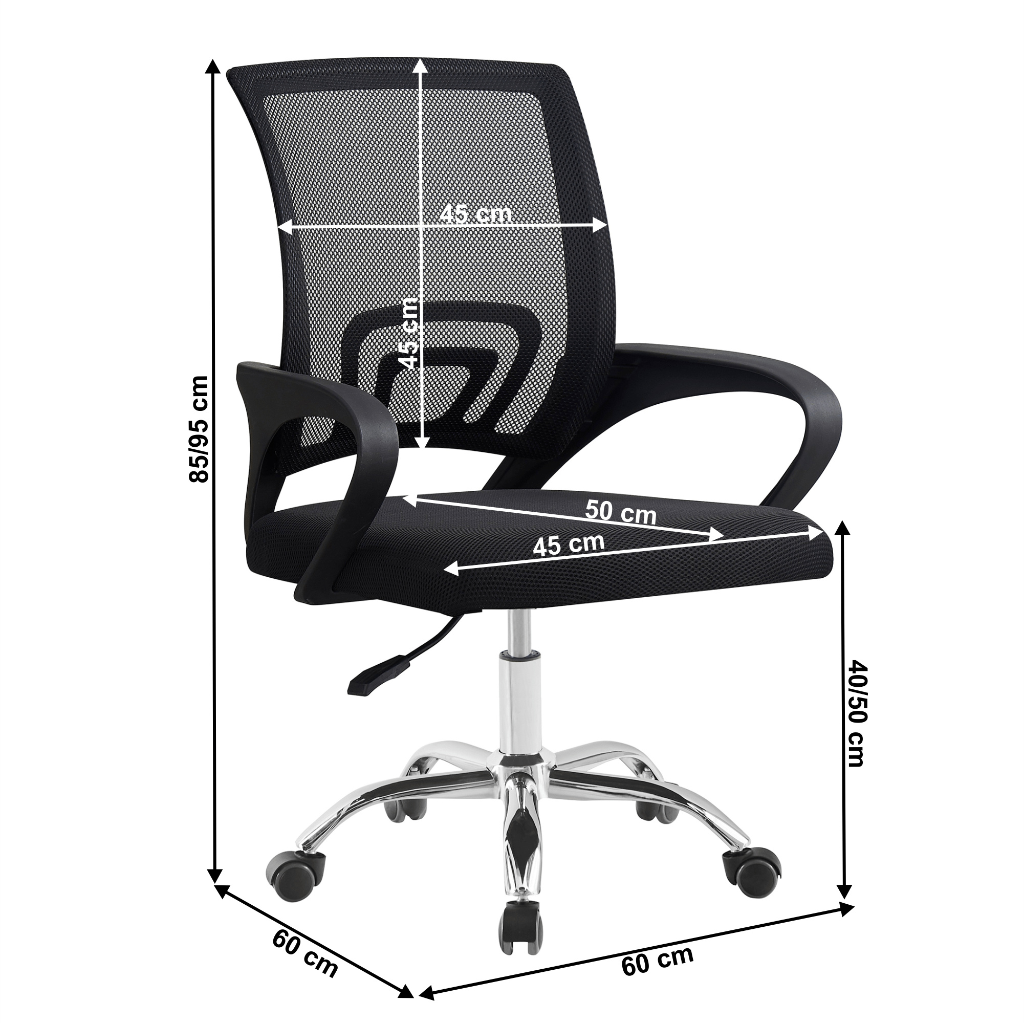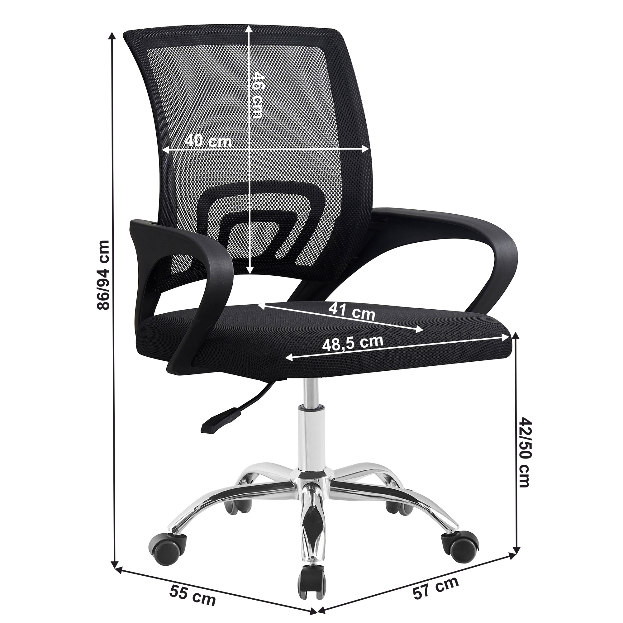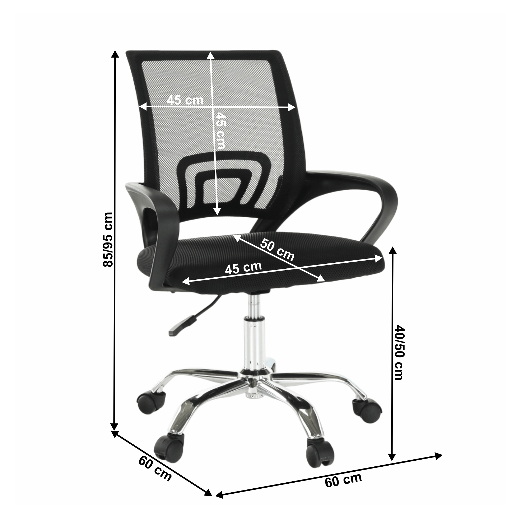 Kancelářské křeslo DEX 4 NEW Materiál: síťovina/plast/kov Oděruodolnost textilie podle testu Martindale: 90 000 oděrů Barva: černá/chrom Rozměry (ŠxHxV): 57x55x86-94 cm Nastavitelná výška sedu: 42-50 cm Hloubka sedu: 41 cm Šířka sedu: 48,5 cm Šířka zádové opěrky: 40 cm Výška zádové opěrky: 46 cm Nosnost: 100 kg Otáčivé Univerzální kolečka vhodná pro měkké i tvrdé podlahy Dodáváno v demontu