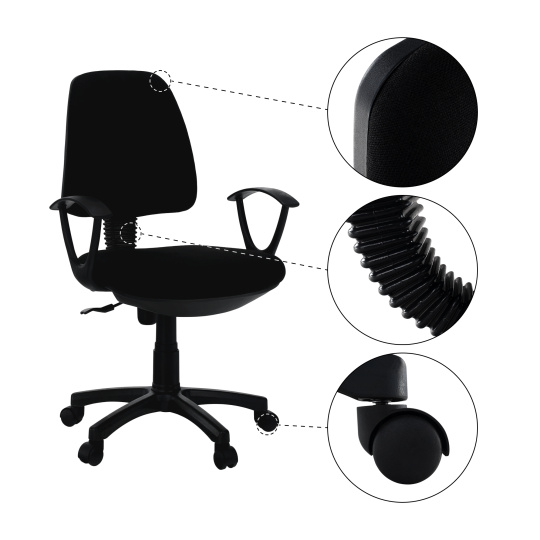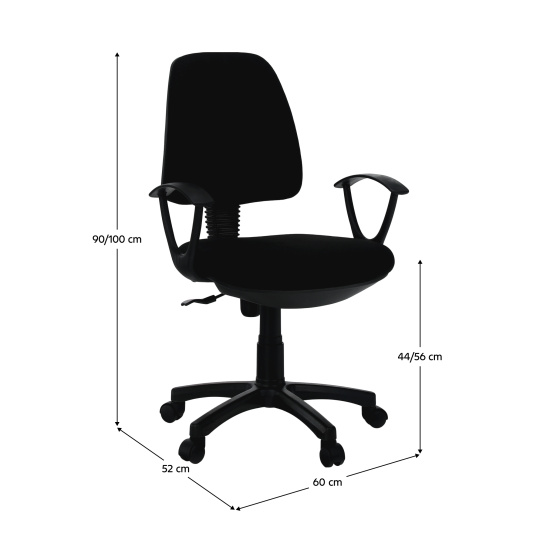Kancelárska stolička COLBY v prevedení čierna látka. Oderuodolnosť textílie podľa testu Martindale: 60 000 oderov Rozmery (ŠxHxV): 60x52x90-100 cm Nosnosť: 100 kg