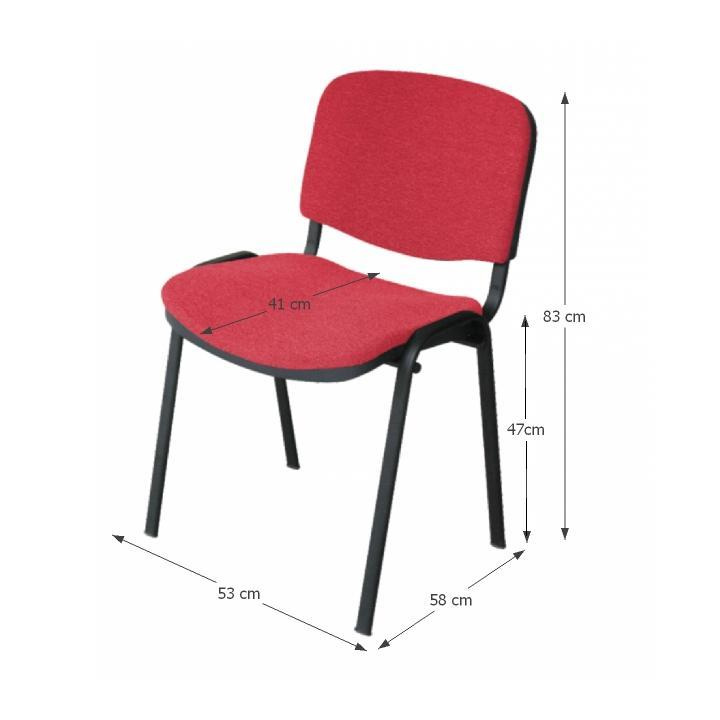 Kancelářská židle ISO NEW Materiál: látka/kov Oděruodolnost textilie podle testu Martindale: 80 000 oděrů Barva: červená/černá Rozměry (ŠxHxV): 53x58x83 cm Výška sedu : 47 cm Hloubka sedu : 41 cm Nosnost: 110 kg Tloušťka materiálu: 1,2 mm Stohovací Dodávána v montě