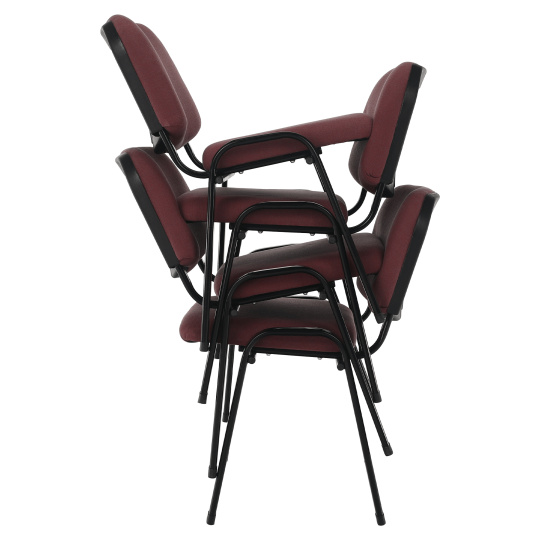Kancelářská židle ISO ECO Materiál čalounění: látka Oděruodolnost textilie podle testu Martindale: 80 000 oděrů Barva: červenohnědá Materiál konstrukce: kov Barva: černá Rozměry (ŠxHxV): 53,5x43x78 cm Výška sedu : 45 cm Hloubka sedu : 40 cm Výška opěradla: 33 cm Šířka opěradla: 48 cm Nosnost: 90 kg Tloušťka materiálu: 1 mm Stohovací Dodávána v demontu Plánujete používání židle ISO ECO v prostředí s dennodenní vyšší zátěží používání, prosím zvažte možnost koupě pevnějšího modelu určeného pro vyšší zátěž a to ISO NEW.