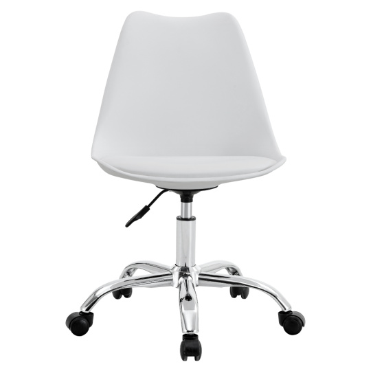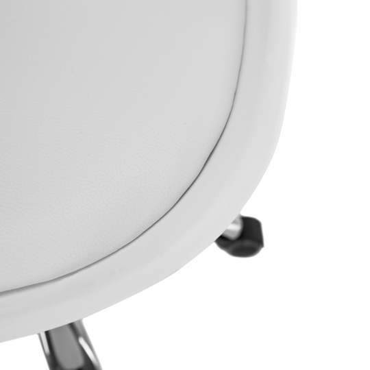 Materiál: plast/ekokůže/chrom Oděruodolnost textilie podle testu Martindale: 100 000 oděrů Barva: bílá/chromovaná Rozměry (ŠxHxV): 58x47x97-109 cm Nastavitelná výška sedu Výška sedu: 45-57 cm Hloubka sedu: 42 cm Nosnost: 100 kg Ergonomický tvar sedáku Na kolečkách Dodáváno v demontu
