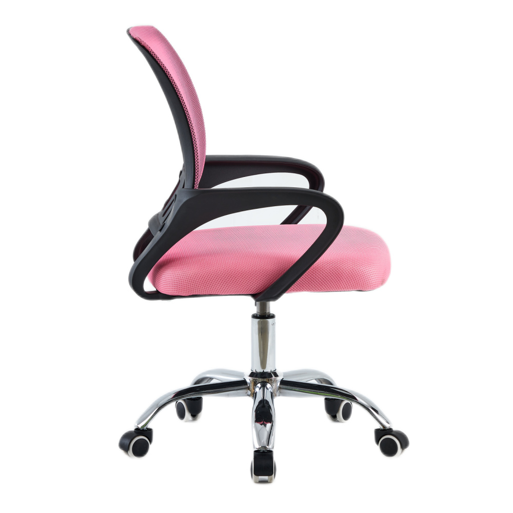 Kancelářské křeslo DEX 4 NEW Materiál: síťovina/plast/kov Oděruodolnost textilie podle testu Martindale: 90 000 oděrů Barva: růžová/chrom Rozměry (ŠxHxV): 57x55x86-94 cm Nastavitelná výška sedu: 42-50 cm Hloubka sedu: 41 cm Šířka sedu: 48,5 cm Šířka zádové opěrky: 40 cm Výška zádové opěrky: 46 cm Nosnost: 100 kg Otáčivé Univerzální kolečka vhodná pro měkké i tvrdé podlahy Dodáváno v demontu
