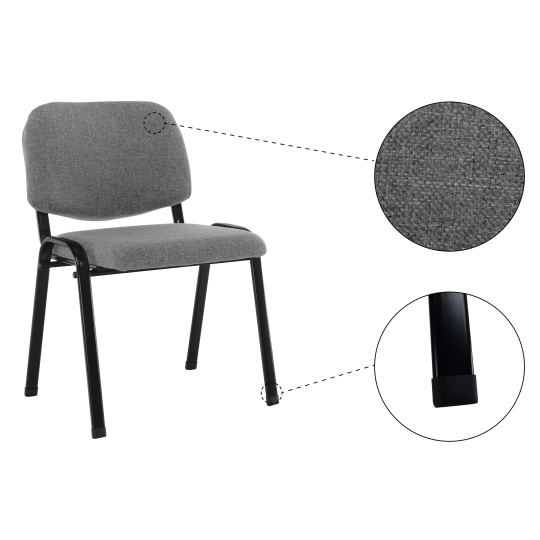 Kancelářská židle ISO ECO Materiál čalounění: látka Oděruodolnost textilie podle testu Martindale: 80 000 oděrů Barva: šedá Materiál konstrukce: kov Barva: černá Rozměry (ŠxHxV): 53,5x43x78 cm Výška sedu : 45 cm Hloubka sedu : 40 cm Výška opěradla: 33 cm Šířka opěradla: 48 cm Nosnost: 90 kg Tloušťka materiálu: 1 mm Stohovací Dodávána v demontu Plánujete používání židle ISO ECO v prostředí s dennodenní vyšší zátěží používání, prosím zvažte možnost koupě pevnějšího modelu určeného pro vyšší zátěž a to ISO NEW.