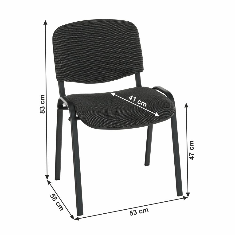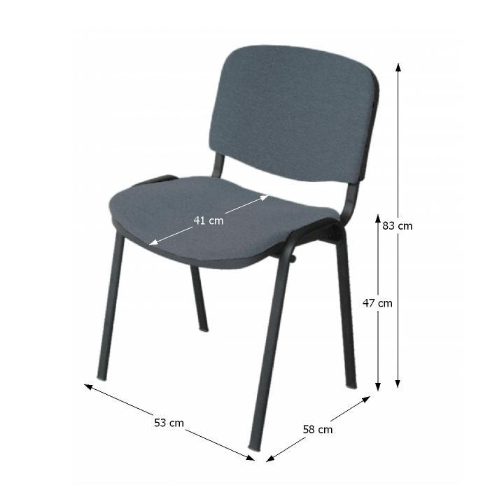 Kancelářská židle ISO NEW Materiál: látka/kov Oděruodolnost textilie podle testu Martindale: 80 000 oděrů Barva: šedá/černá Rozměry (ŠxHxV): 53x58x83 cm Výška sedu : 47 cm Hloubka sedu : 41 cm Nosnost: 110 kg Tloušťka materiálu: 1,2 mm Stohovací Dodávána v montě