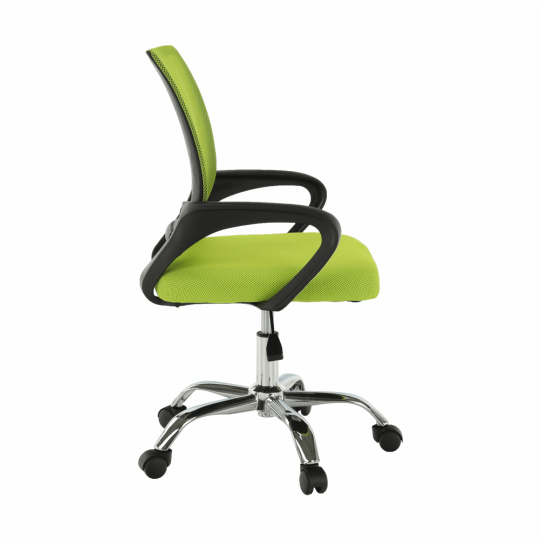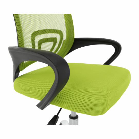 Materiál čalounění: síťovina Oděruodolnost textilie podle testu Martindale: 90 000 oděrů Barva: zelená Materiál opěrky na ruce: plast Barva: černá Materiál podstava: kov Barva: chrom Rozměry (ŠxHxV): 57x55x86-94 cm Nastavitelná výška sedu: 42-50 cm Nosnost: 100 kg Opěrka zad (ŠxV): 40x46 cm Sedák (ŠxH): 41x48,5 cm Dodáváno v demontu