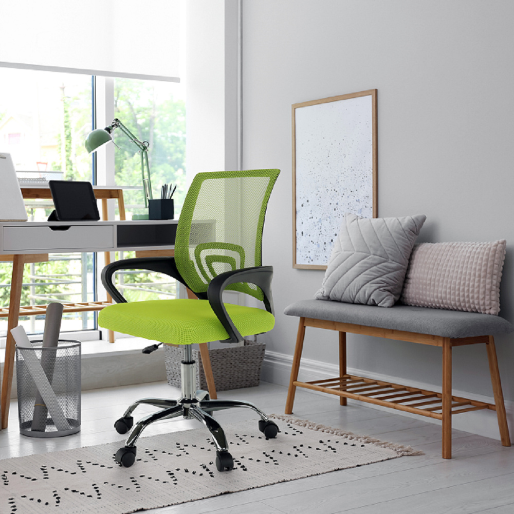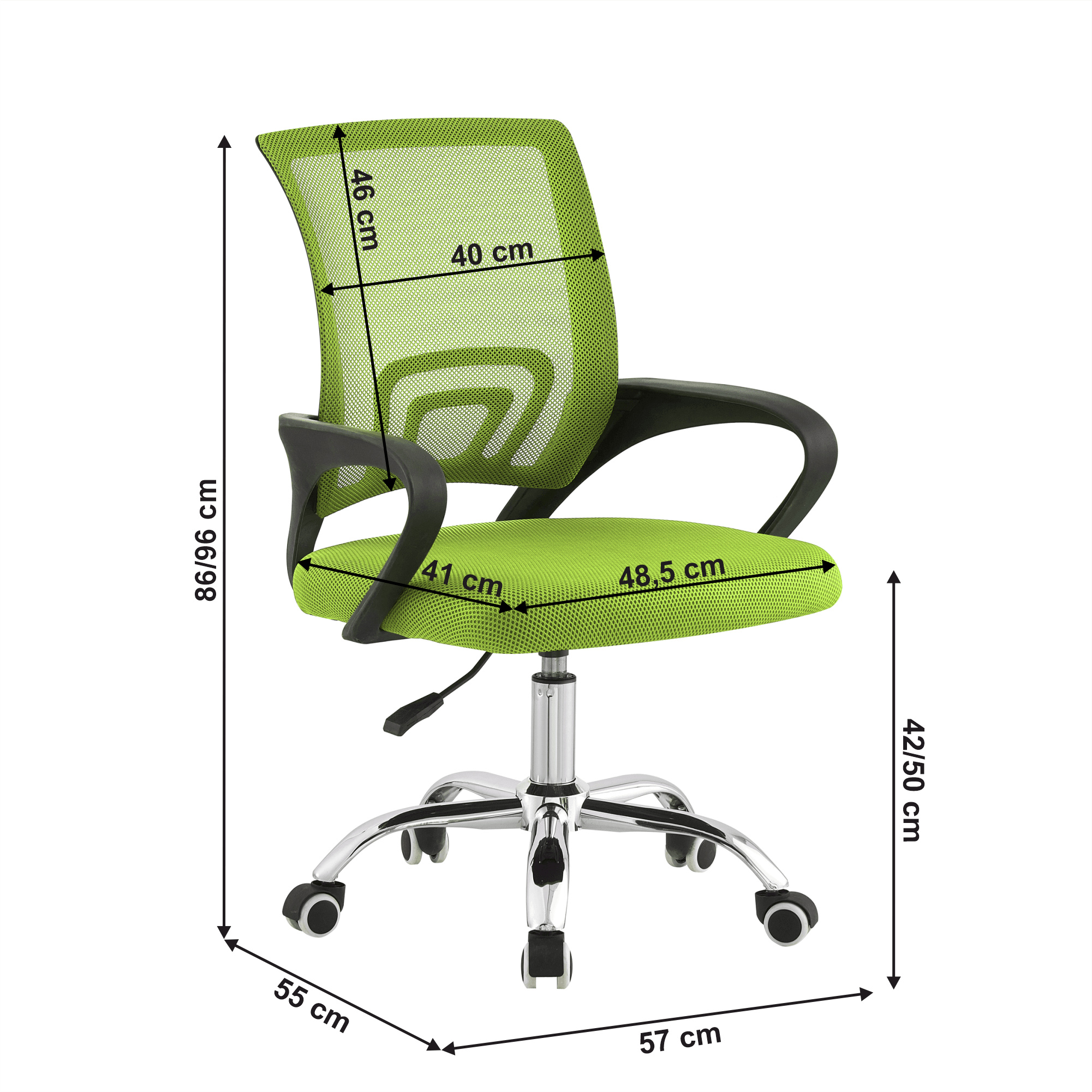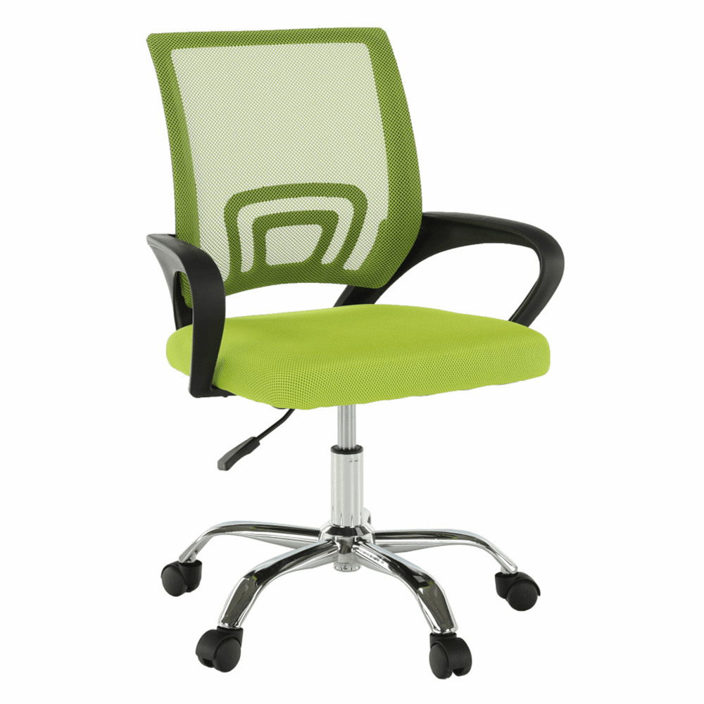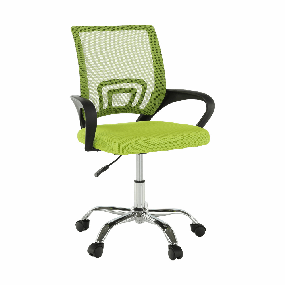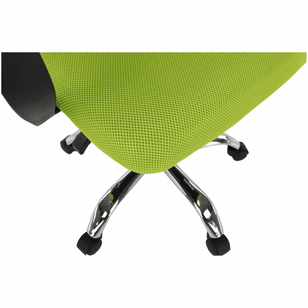 Materiál čalounění: síťovina Oděruodolnost textilie podle testu Martindale: 90 000 oděrů Barva: zelená Materiál opěrky na ruce: plast Barva: černá Materiál podstava: kov Barva: chrom Rozměry (ŠxHxV): 57x55x86-94 cm Nastavitelná výška sedu: 42-50 cm Nosnost: 100 kg Opěrka zad (ŠxV): 40x46 cm Sedák (ŠxH): 41x48,5 cm Dodáváno v demontu