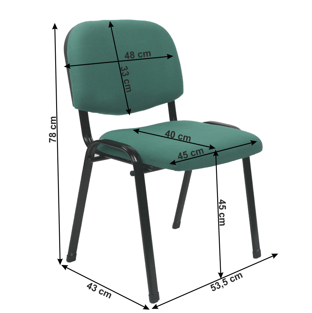 Kancelářská židle ISO ECO Materiál čalounění: látka Oděruodolnost textilie podle testu Martindale: 80 000 oděrů Barva: zelená Materiál konstrukce: kov Barva: černá Rozměry (ŠxHxV): 53,5x43x78 cm Výška sedu : 45 cm Hloubka sedu : 40 cm Výška opěradla: 33 cm Šířka opěradla: 48 cm Nosnost: 90 kg Tloušťka materiálu: 1 mm Stohovací Dodávána v demontu Plánujete používání židle ISO ECO v prostředí s dennodenní vyšší zátěží používání, prosím zvažte možnost koupě pevnějšího modelu určeného pro vyšší zátěž a to ISO NEW.
