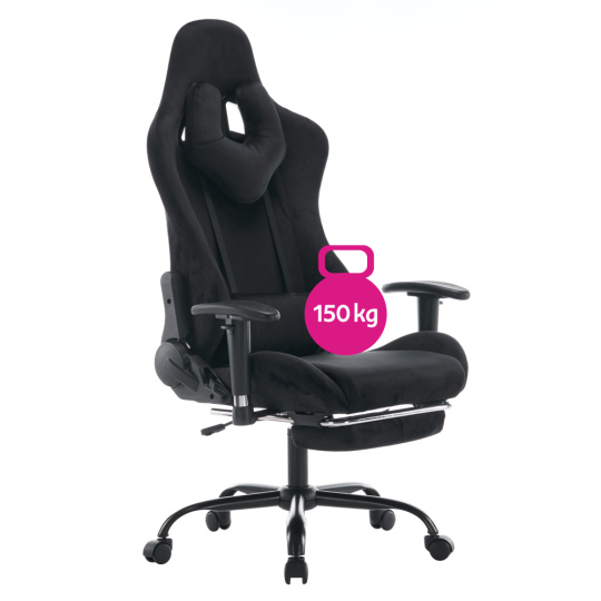 Kancelářské/herní křeslo, černá Velvet látka, nosnost 150 kg, SALOP