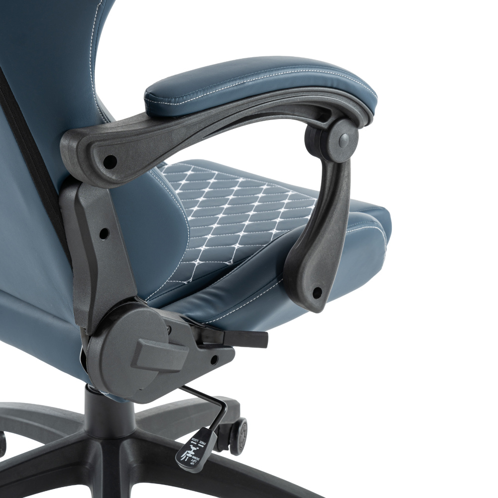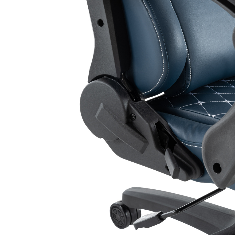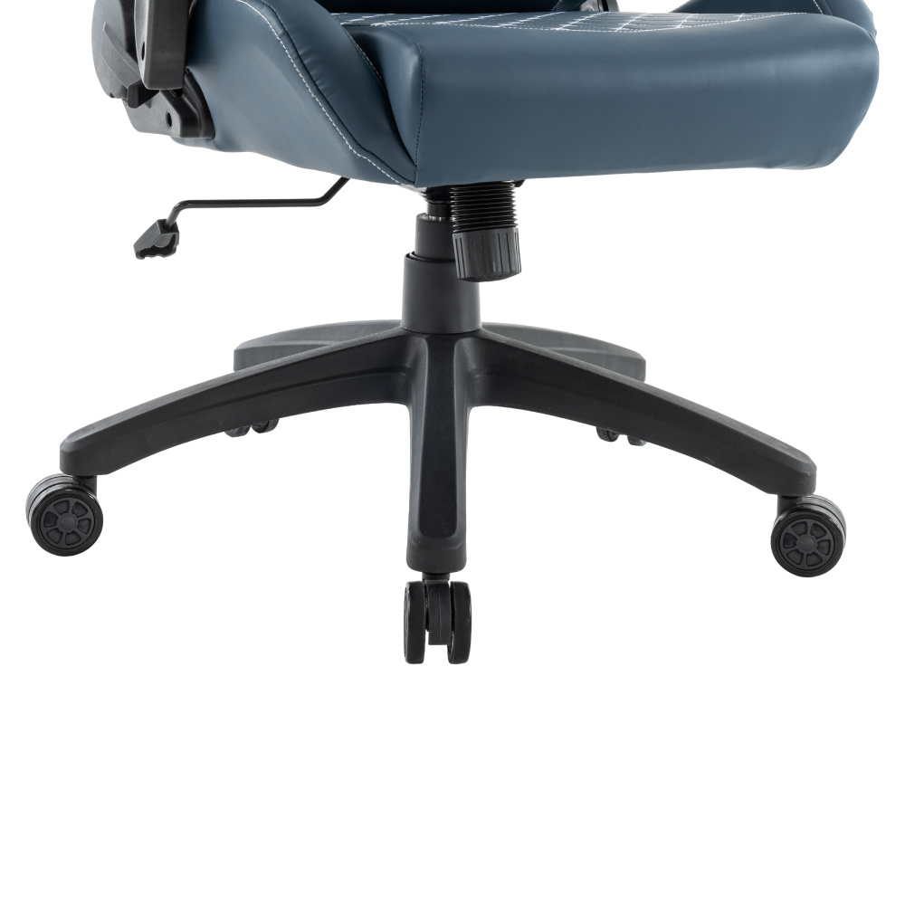 Materiál: olejovo-vosková kůže/plast Barva: modrá/černá Rozměry (ŠxHxV): 72x70x130-139 cm Výška sedu: 52-61 cm Šířka sedu: 39 cm Hloubka sedu: 47 cm Výška zádové opěrky: 82 cm Šířka zádové opěrky: 59,5 cm Nosnost: 150 kg Hmotnost: 16 kg Nastavitelná výška sedu Čalouněné opěrky na ruce Nastavitelná opěrka hlavy Polohovací opěrka zad má sklon 90-180° Odnímatelná opěrka hlavy a bederní opěrka Otočné Mechanismus houpání Univerzální kolečka Vhodné pro tvrdé i měkké podlahy Pětiramenná podstava Dodáváno v demontu