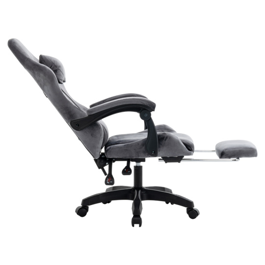 Materiál: látka/plast Oděruodolnost textilie podle testu Martindale: 15 000 oděrů Barva: šedá/černá Rozměry (ŠxHxV): 63x62x113-123 cm Výška sedu: 44-54 cm Šířka sedu: 36 cm Hloubka sedu: 40 cm Výška zádové opěrky: 78 cm Šířka zádové opěrky: 54 cm Nosnost: 130 kg Hmotnost: 14 kg Nastavitelná výška sedu Čalouněné opěrky na ruce Nastavitelná opěrka hlavy Polohovací opěrka zad má sklon 90-135° Odnímatelná opěrka hlavy a bederní opěrka Výsuvná podnož Otočné Mechanismus houpání Univerzální kolečka Vhodné pro tvrdé i měkké podlahy Pětiramenná podstava Dodáváno v demontu
