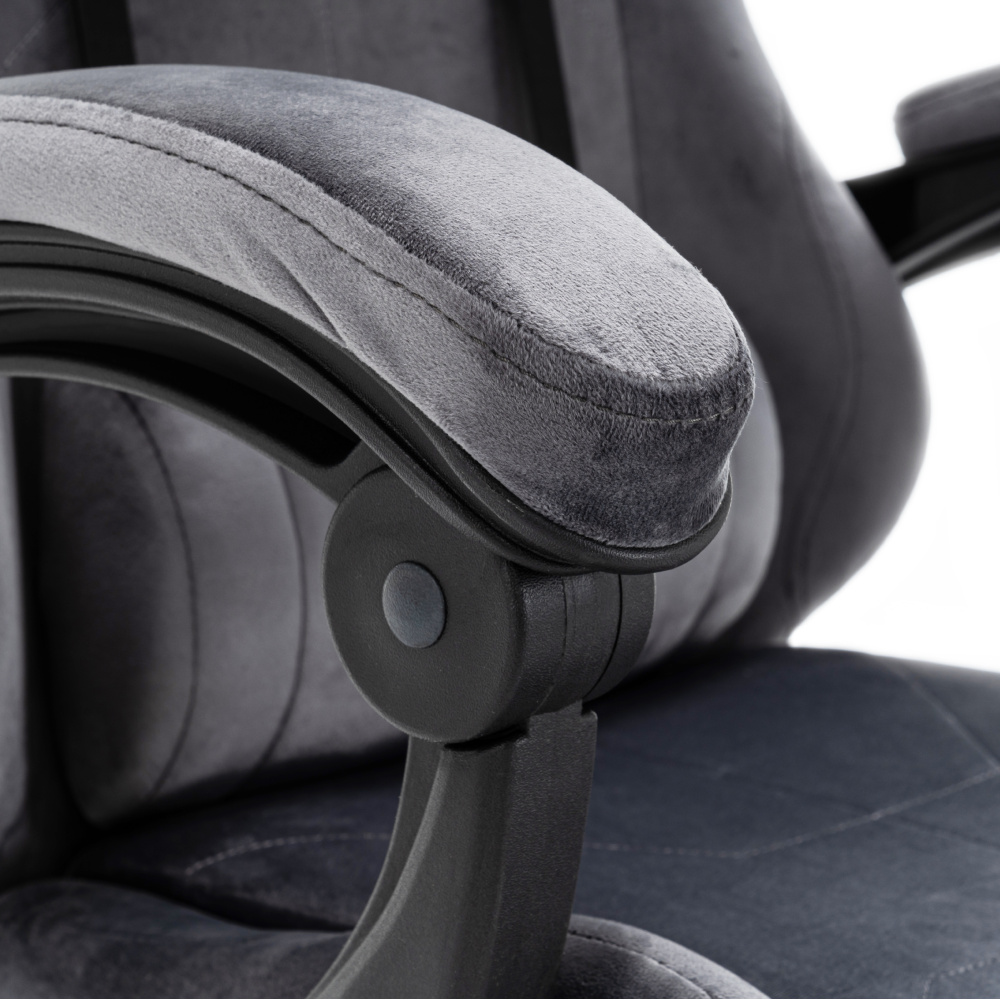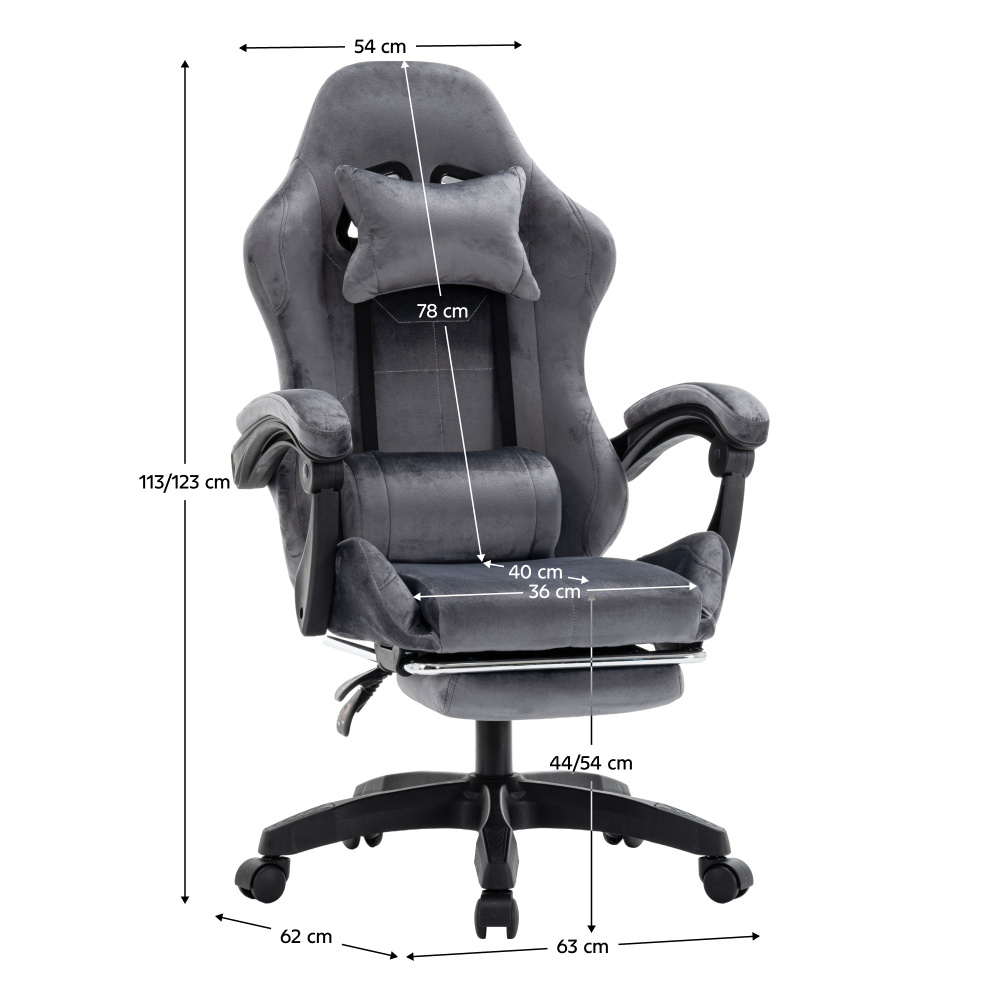 Materiál: látka/plast Oděruodolnost textilie podle testu Martindale: 15 000 oděrů Barva: šedá/černá Rozměry (ŠxHxV): 63x62x113-123 cm Výška sedu: 44-54 cm Šířka sedu: 36 cm Hloubka sedu: 40 cm Výška zádové opěrky: 78 cm Šířka zádové opěrky: 54 cm Nosnost: 130 kg Hmotnost: 14 kg Nastavitelná výška sedu Čalouněné opěrky na ruce Nastavitelná opěrka hlavy Polohovací opěrka zad má sklon 90-135° Odnímatelná opěrka hlavy a bederní opěrka Výsuvná podnož Otočné Mechanismus houpání Univerzální kolečka Vhodné pro tvrdé i měkké podlahy Pětiramenná podstava Dodáváno v demontu