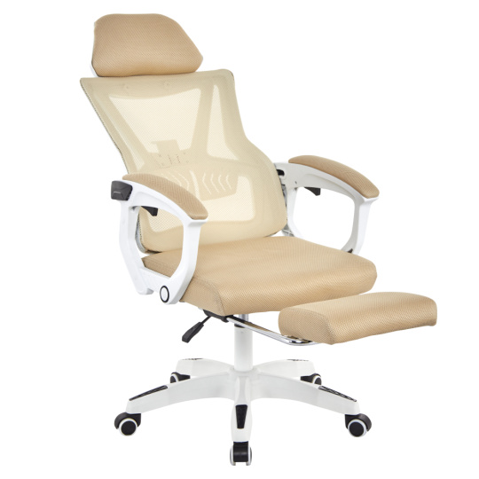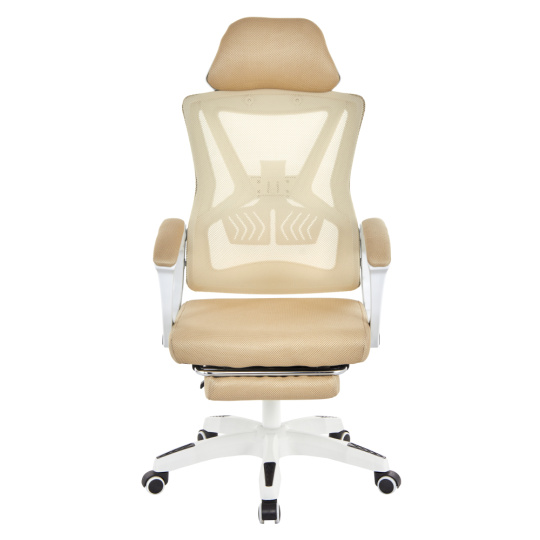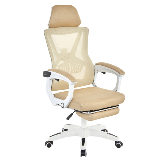 Materiál: síťovina/plast Oděruodolnost textilie podle testu Martindale: 90 000 oděrů Barva: béžová/bílá Rozměry (ŠxHxV): 59x63x112-122 cm Výška sedu: 41-51 cm Šířka sedu: 49 cm Hloubka sedu: 48 cm Výška zádové opěrky: 73 cm Šířka zádové opěrky: 48 cm Nastavitelná výška sedu Čalouněné opěrky na ruku Výsuvná podnožka Polohovací opěrka zad Nastavení tuhosti v oblasti křížů Mechanismus houpání Univerzální kolečka Vhodné pro tvrdé i měkké podlahy Pětiramenná podstava Nosnost: 150 kg Dodáváno v demontu