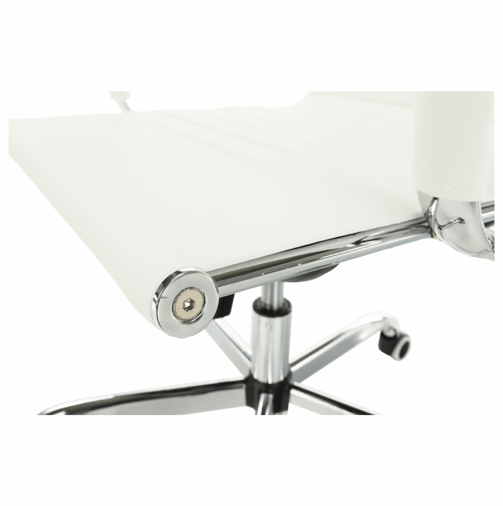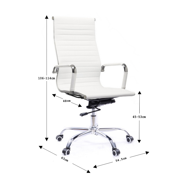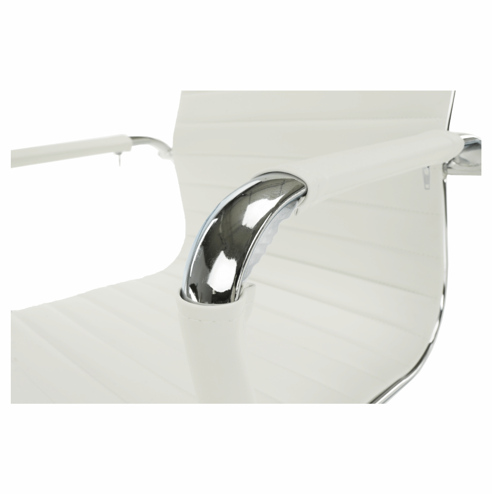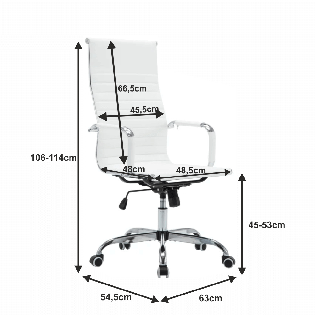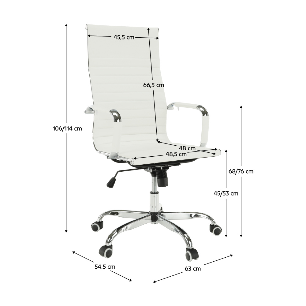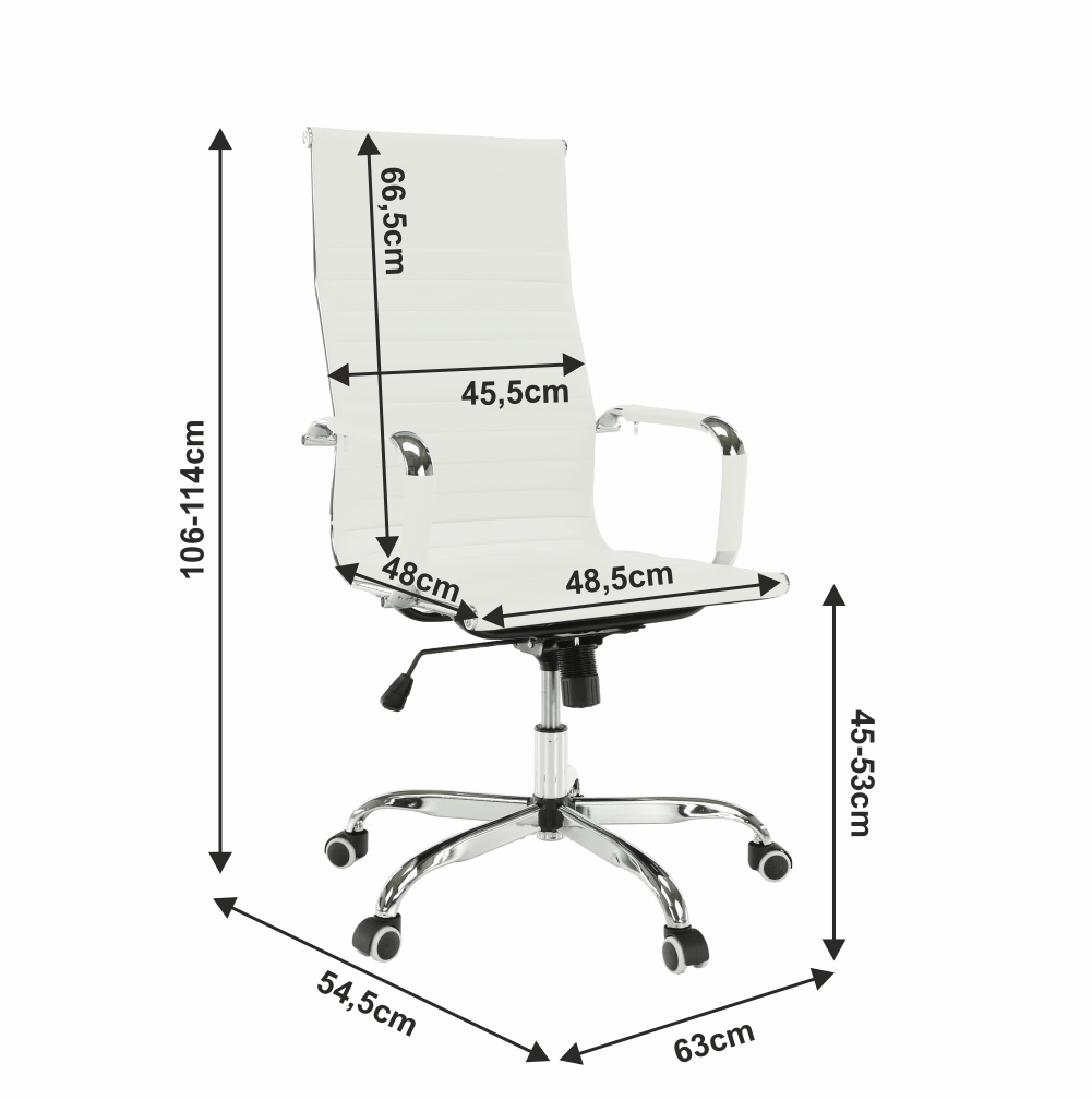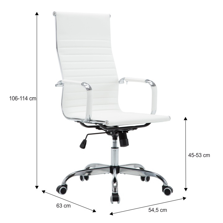 Moderní kancelářské křeslo AZURE 2 NEW Barva: bílá Materiál: ekokůže / chrom Oděruodolnost ekokůže podle testu Martindale: 100 000 oděrek Rozměry (ŠxHxV): 54,5x63x106-114 cm Výška sedu: 45-53 cm Výška od země po opěrku na ruce: 68-76 cm Hloubka sedu: 48 Nosnost: 110 kg Opěrka zad (ŠxV): 45,5x66,5 cm Sedadlo (ŠxH): 48,5x48 cm Dodávané v demontu.
