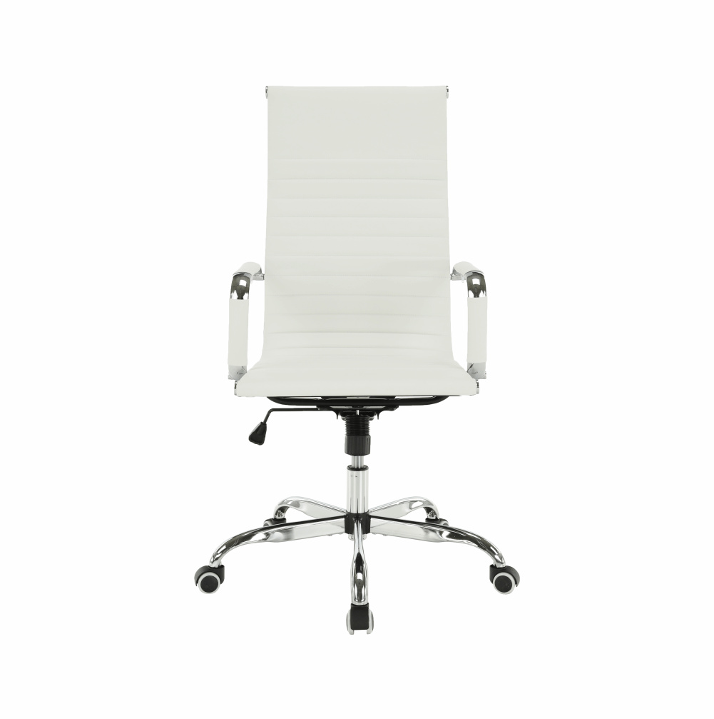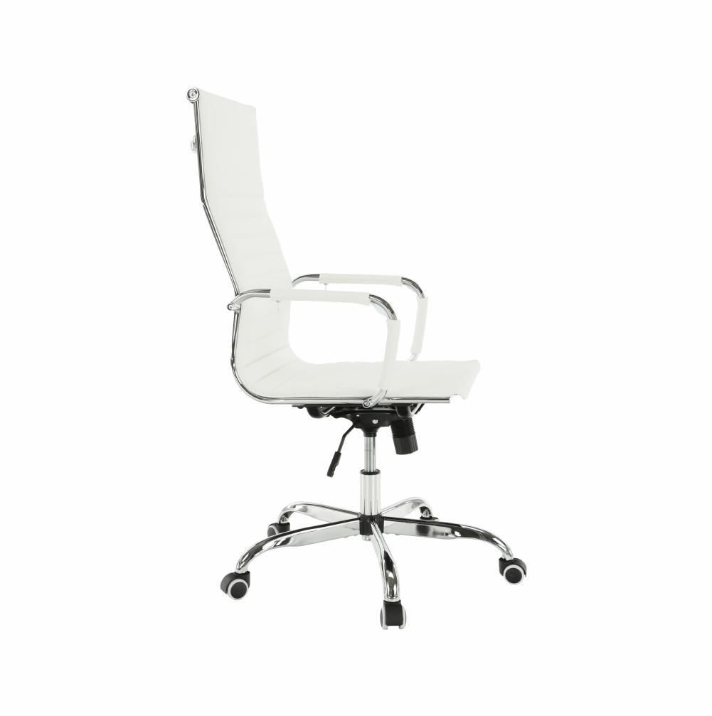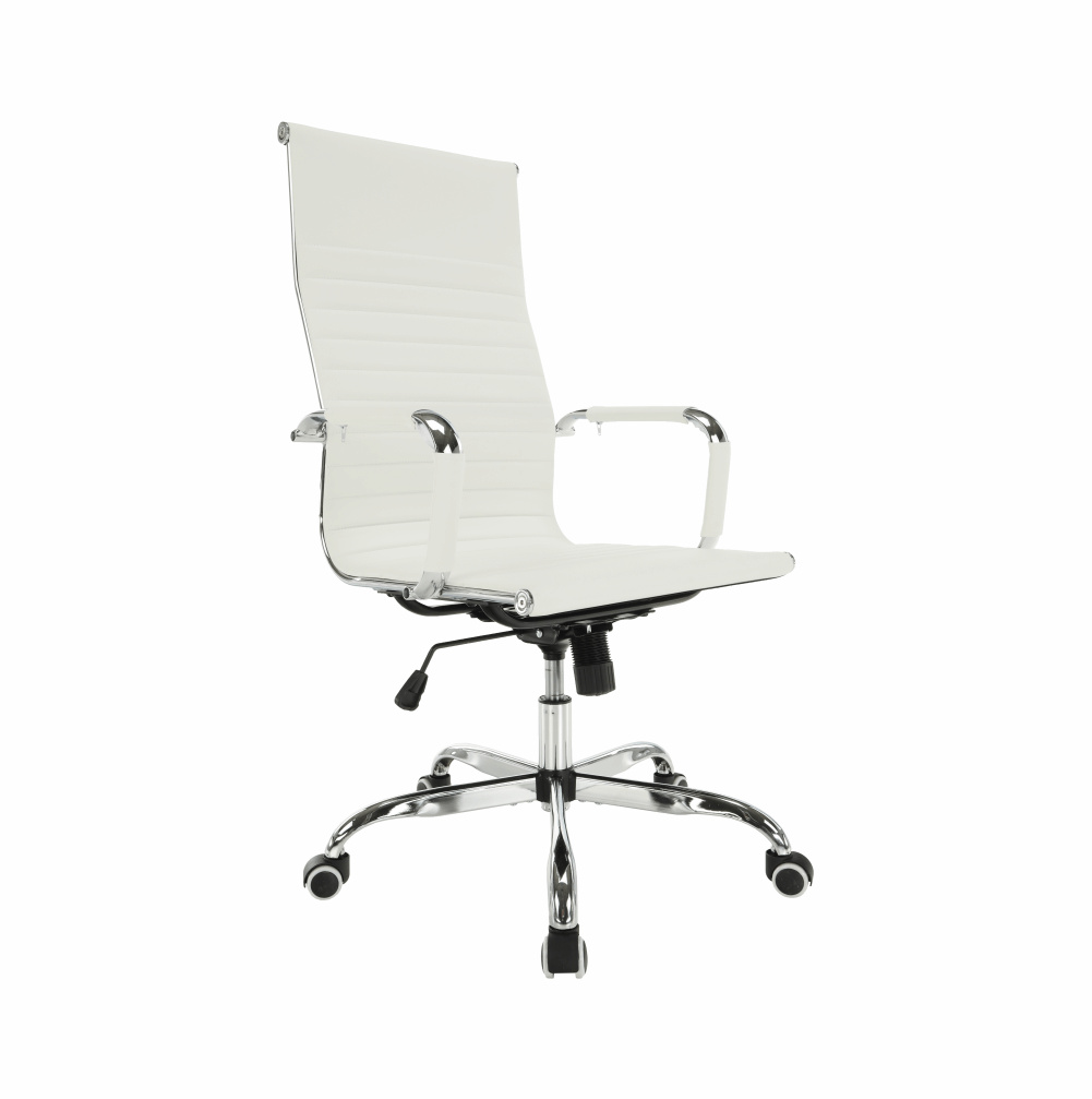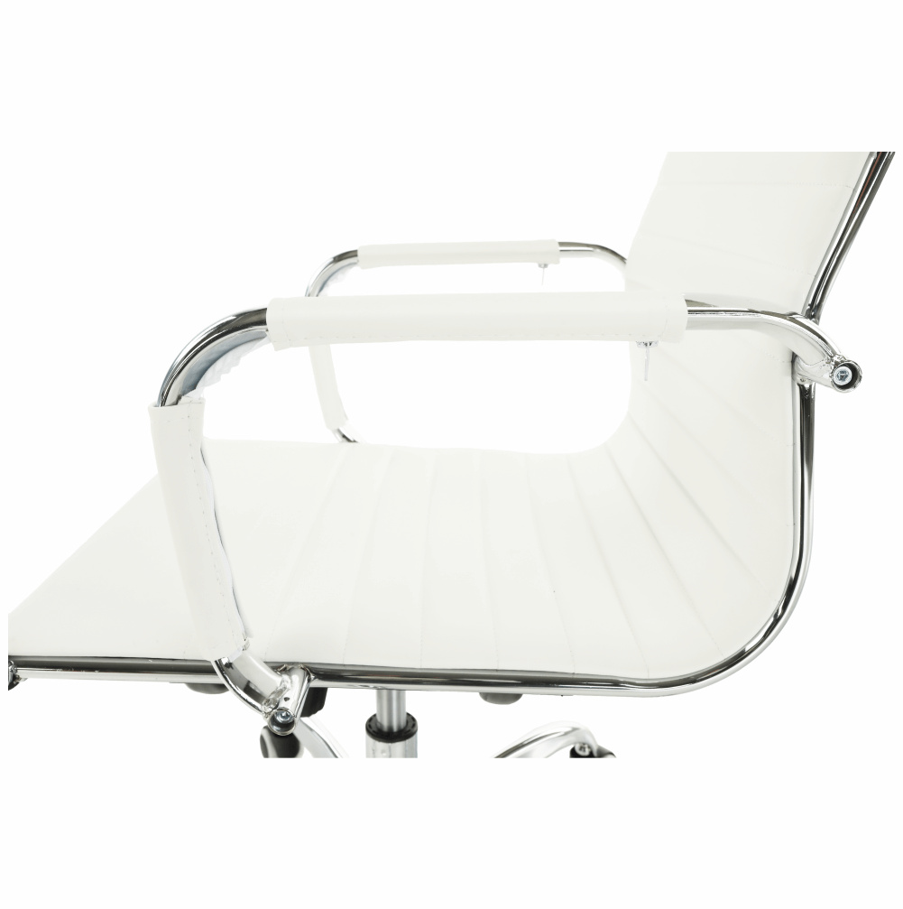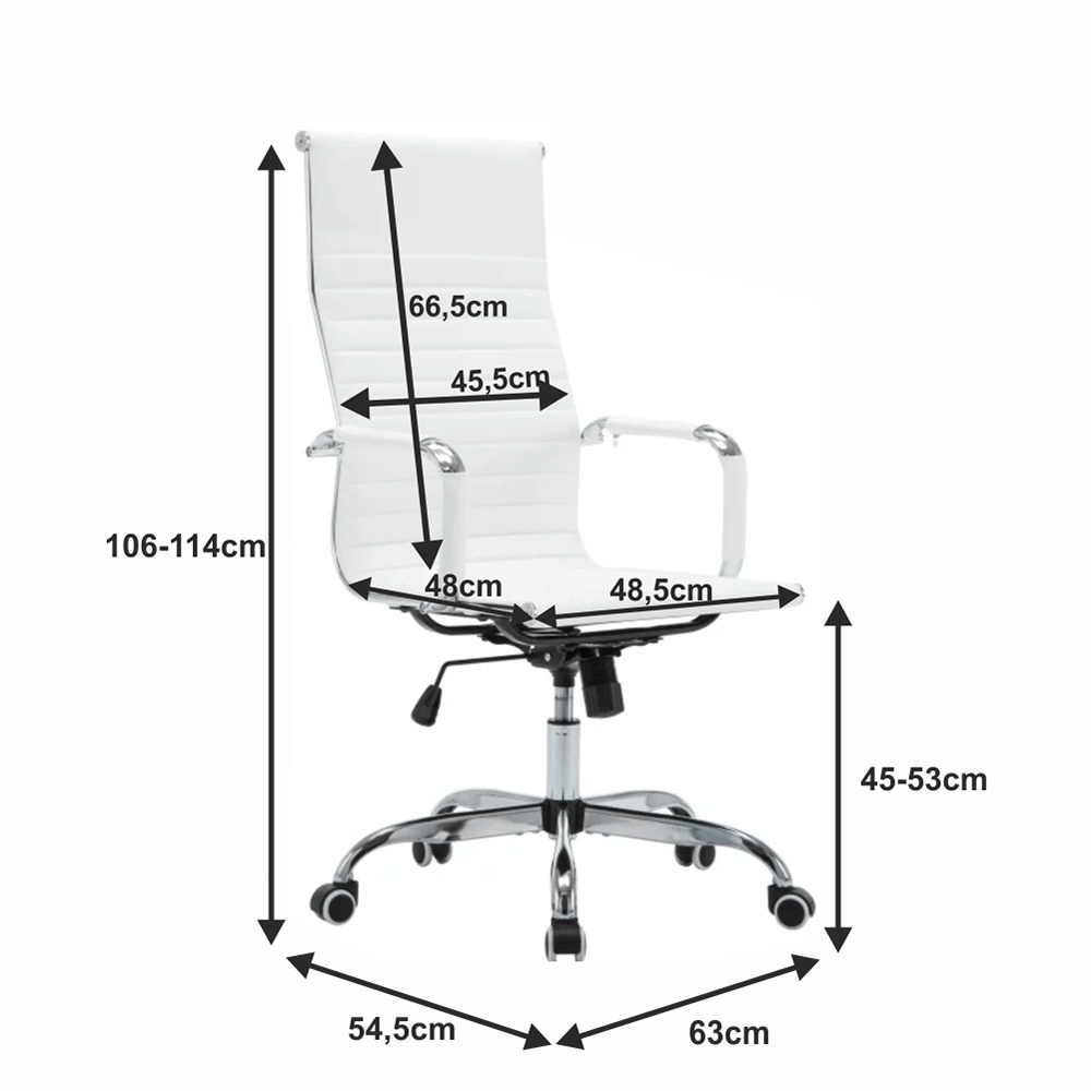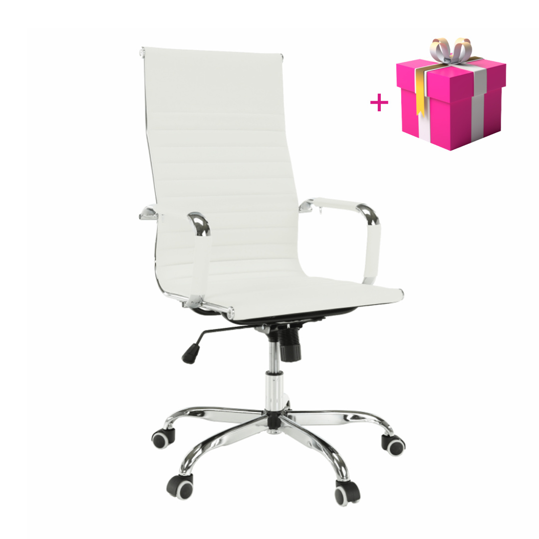 Moderní kancelářské křeslo AZURE 2 NEW Barva: bílá Materiál: ekokůže / chrom Oděruodolnost ekokůže podle testu Martindale: 100 000 oděrek Rozměry (ŠxHxV): 54,5x63x106-114 cm Výška sedu: 45-53 cm Výška od země po opěrku na ruce: 68-76 cm Hloubka sedu: 48 Nosnost: 110 kg Opěrka zad (ŠxV): 45,5x66,5 cm Sedadlo (ŠxH): 48,5x48 cm Dodávané v demontu.