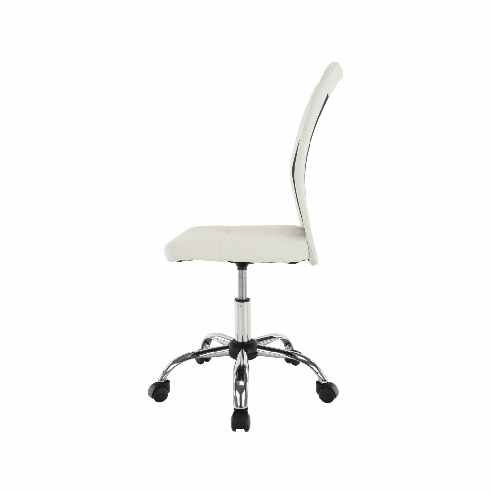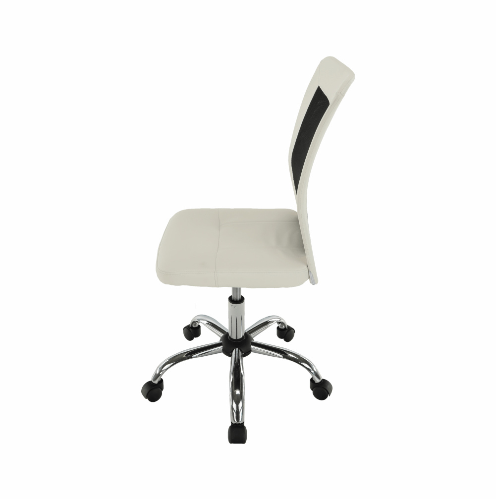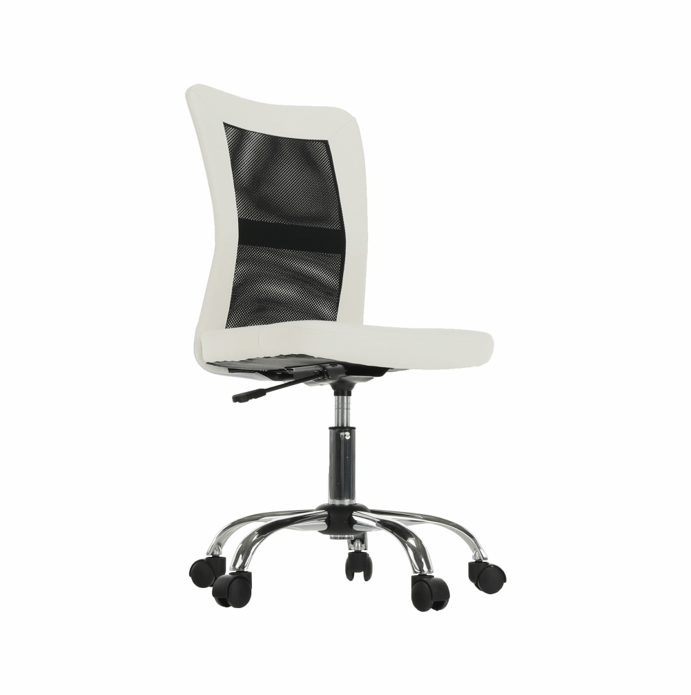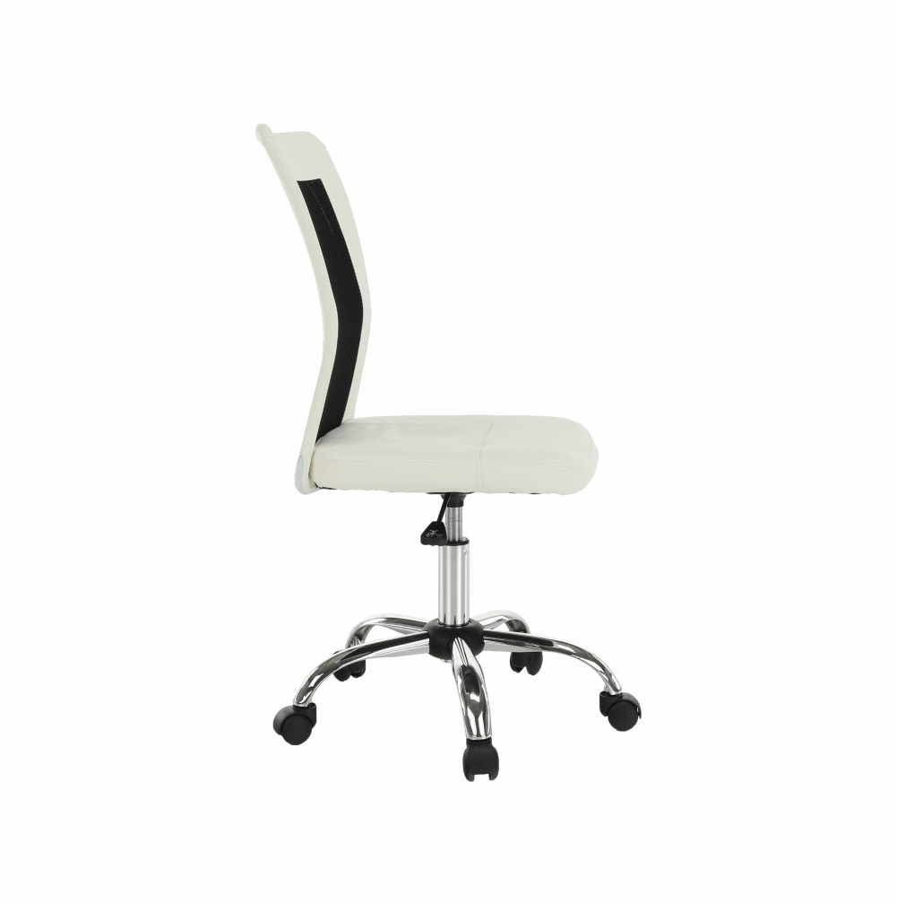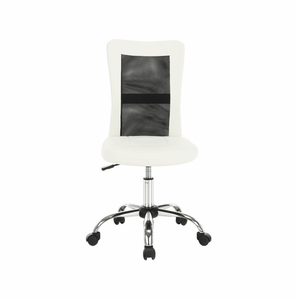 Provedení: černá / bílá Materiál: ekokůže / síťka / chrom Oděruodolnost textilie podle testu Martindale: 100 000 oděrek Oděruodolnost textilie podle testu Martindale: 90 000 oděrek Rozměry (ŠxHxV): 43x59x90-100 cm Výška sedu: 43-53 cm Hloubka sedu: 42 cm Šířka sedu: 42 cm Výška zádové opěrky: 57 cm Šířka zádové opěrky: 39 cm Nosnost: 110 kg Dodávané v demontu.