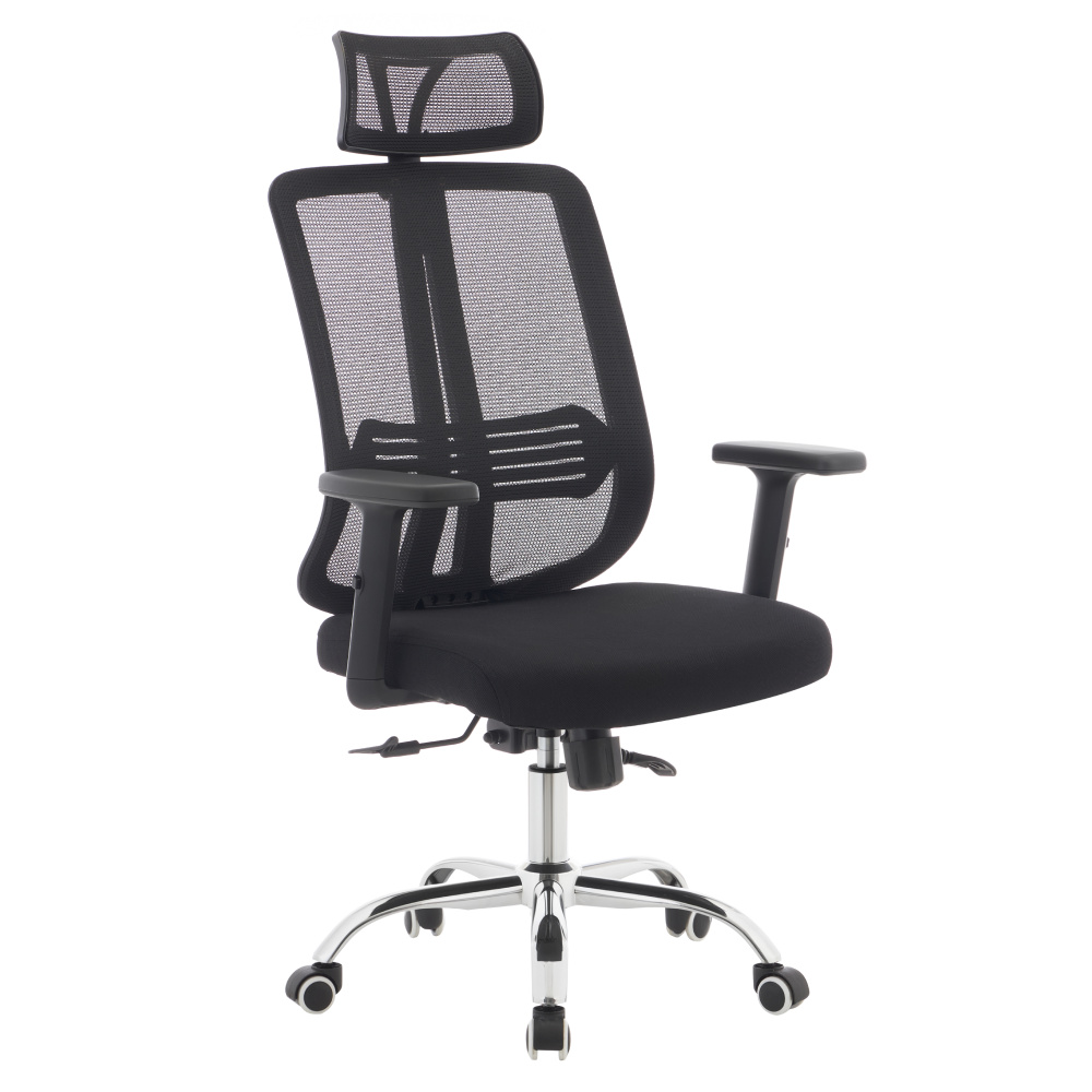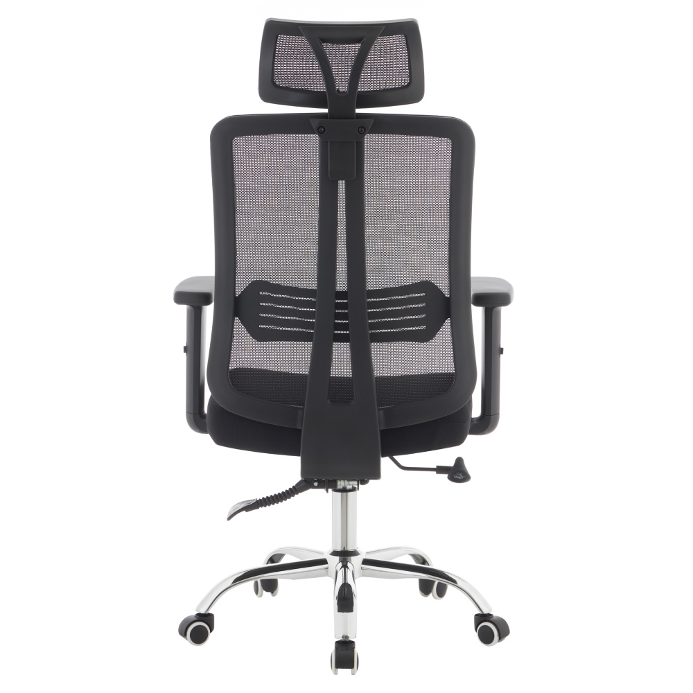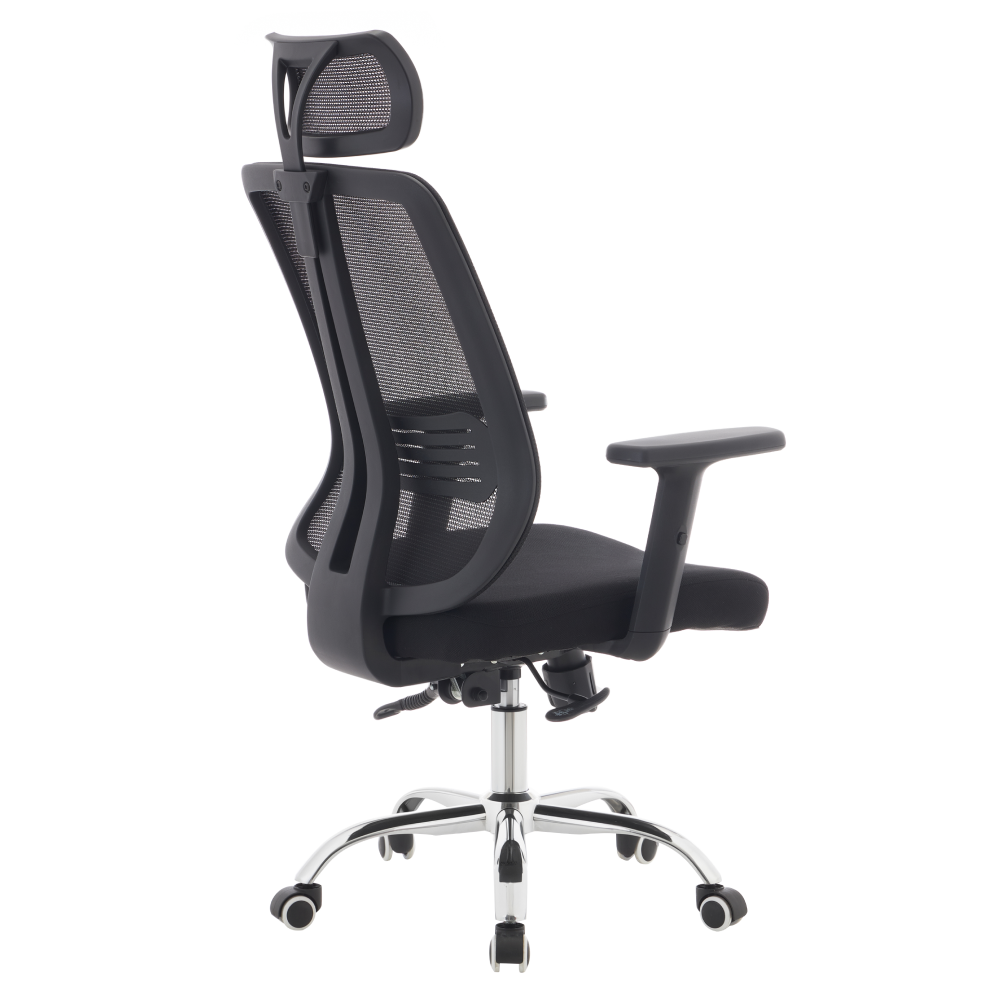 Materiál: síťovina/látka/plast/kov Oděruodolnost síťoviny podle testu Martindale: 90 000 oděrů Oděruodolnost textilie podle testu Martindale: 80 000 oděrů Barva: černá/chrom Rozměry (ŠxHxV): 63x60x117-127 cm Výška sedu: 45-55 cm Hloubka sedu: 47 cm Šířka sedu: 48 cm Šířka zádové opěrky: 50 cm Výška zádové opěrky: 71 cm Nosnost: 150 kg Otočná funkce Funkce houpání Nastavitelná výška sedu Nastavitelná výška opěrek na ruce S opěrkou hlavy Univerzální kolečka Kolečka jsou vhodná pro měkké i tvrdé podlahy Praktická Ergonomické vlastnosti Dodáváno v demontu