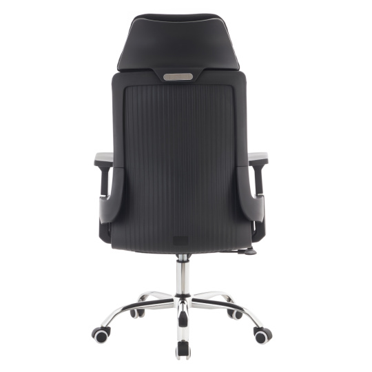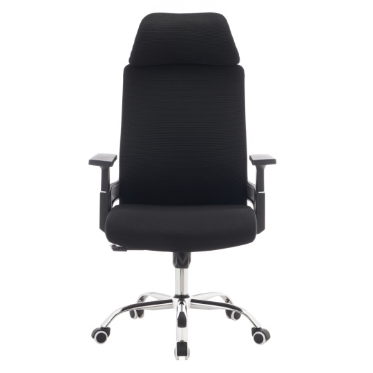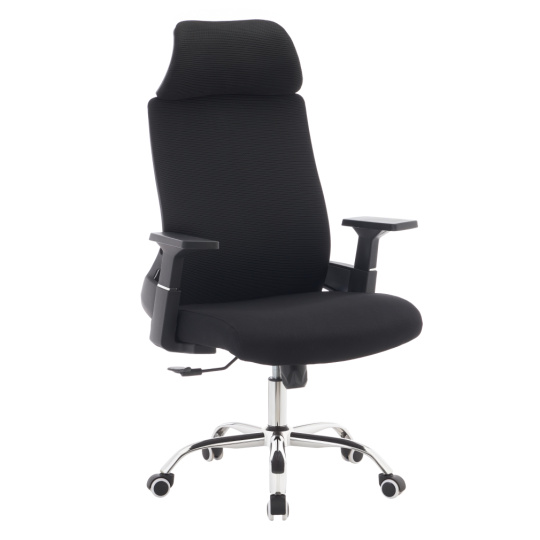 Materiál: síťovina/látka/plast/kov Oděruodolnost síťoviny podle testu Martindale: 90 000 oděrů Oděruodolnost textilie podle testu Martindale: 80 000 oděrů Barva: černá/chrom Rozměry (ŠxHxV): 63x65x115-125 cm Výška sedu: 45-55 cm Hloubka sedu: 51 cm Šířka sedu: 49 cm Šířka zádové opěrky: 45 cm Výška zádové opěrky: 73 cm Nosnost: 150 kg Otočná židle Mechanismus houpání Nastavitelná výška sedu S opěrkami na ruce S opěrkou hlavy Univerzální kolečka Vhodné pro měkké i tvrdé podlahy Dodáváno v demontu