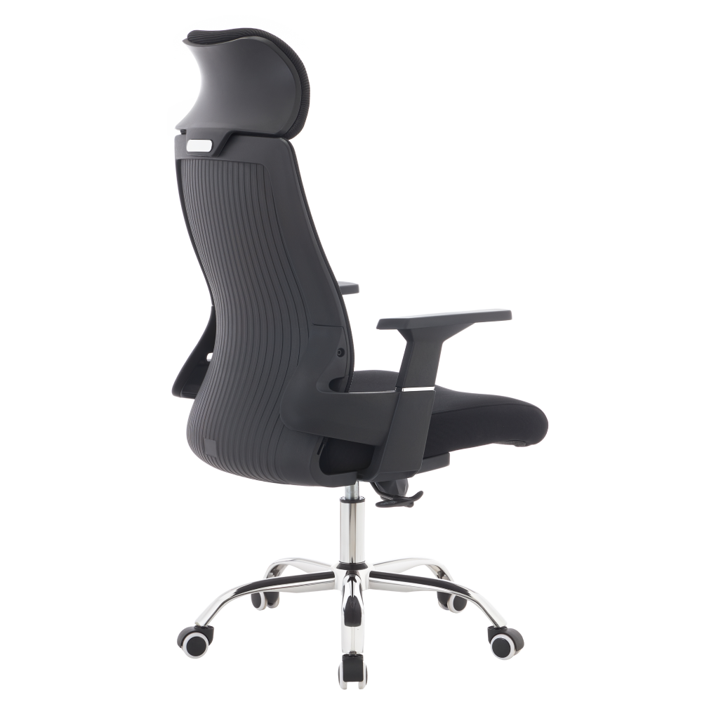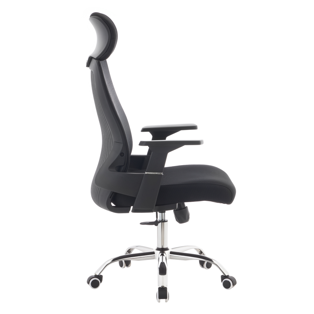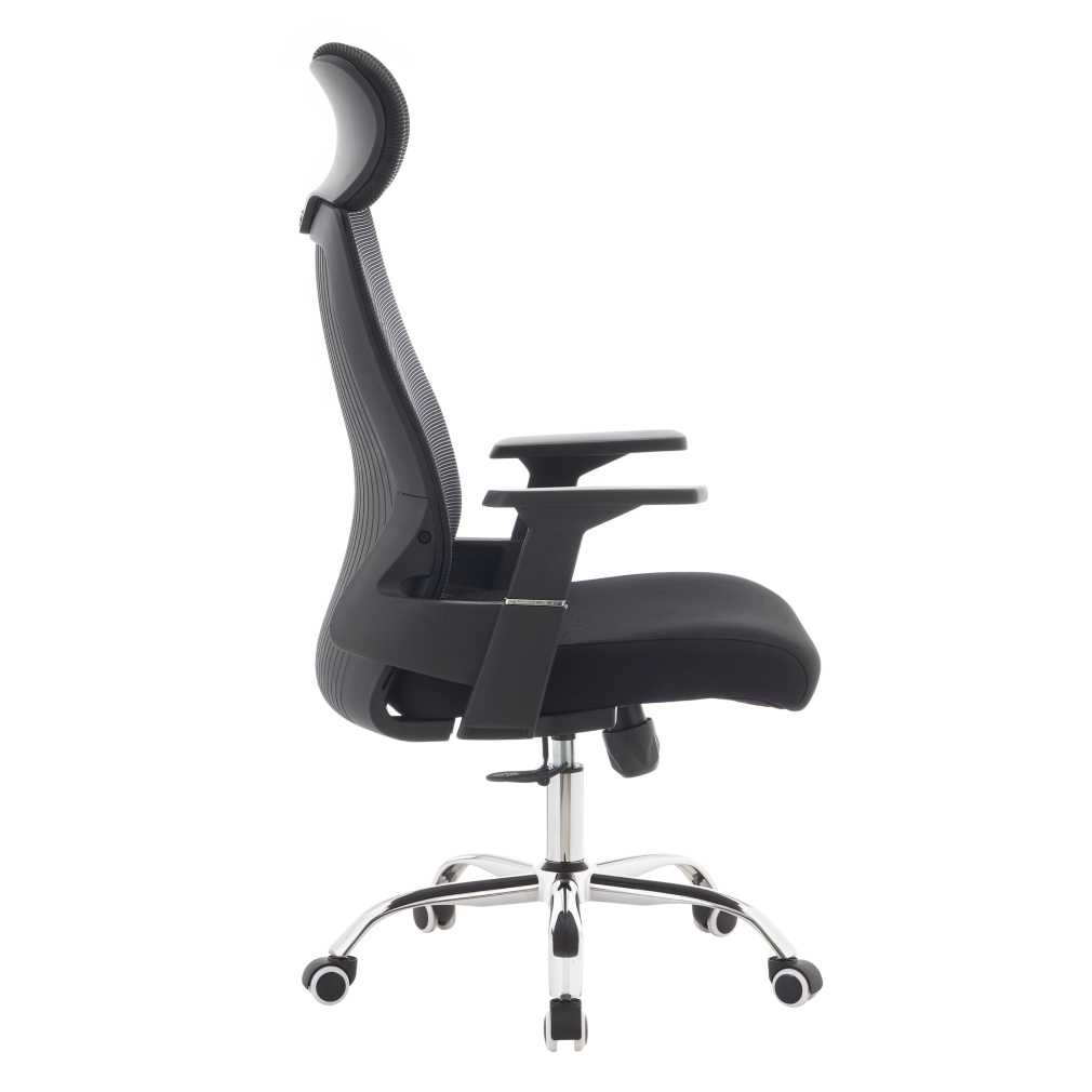 Materiál: síťovina/látka/plast/kov Oděruodolnost síťoviny podle testu Martindale: 90 000 oděrů Oděruodolnost textilie podle testu Martindale: 80 000 oděrů Barva: černá/chrom Rozměry (ŠxHxV): 63x65x115-125 cm Výška sedu: 45-55 cm Hloubka sedu: 51 cm Šířka sedu: 49 cm Šířka zádové opěrky: 45 cm Výška zádové opěrky: 73 cm Nosnost: 150 kg Otočná židle Mechanismus houpání Nastavitelná výška sedu S opěrkami na ruce S opěrkou hlavy Univerzální kolečka Vhodné pro měkké i tvrdé podlahy Dodáváno v demontu