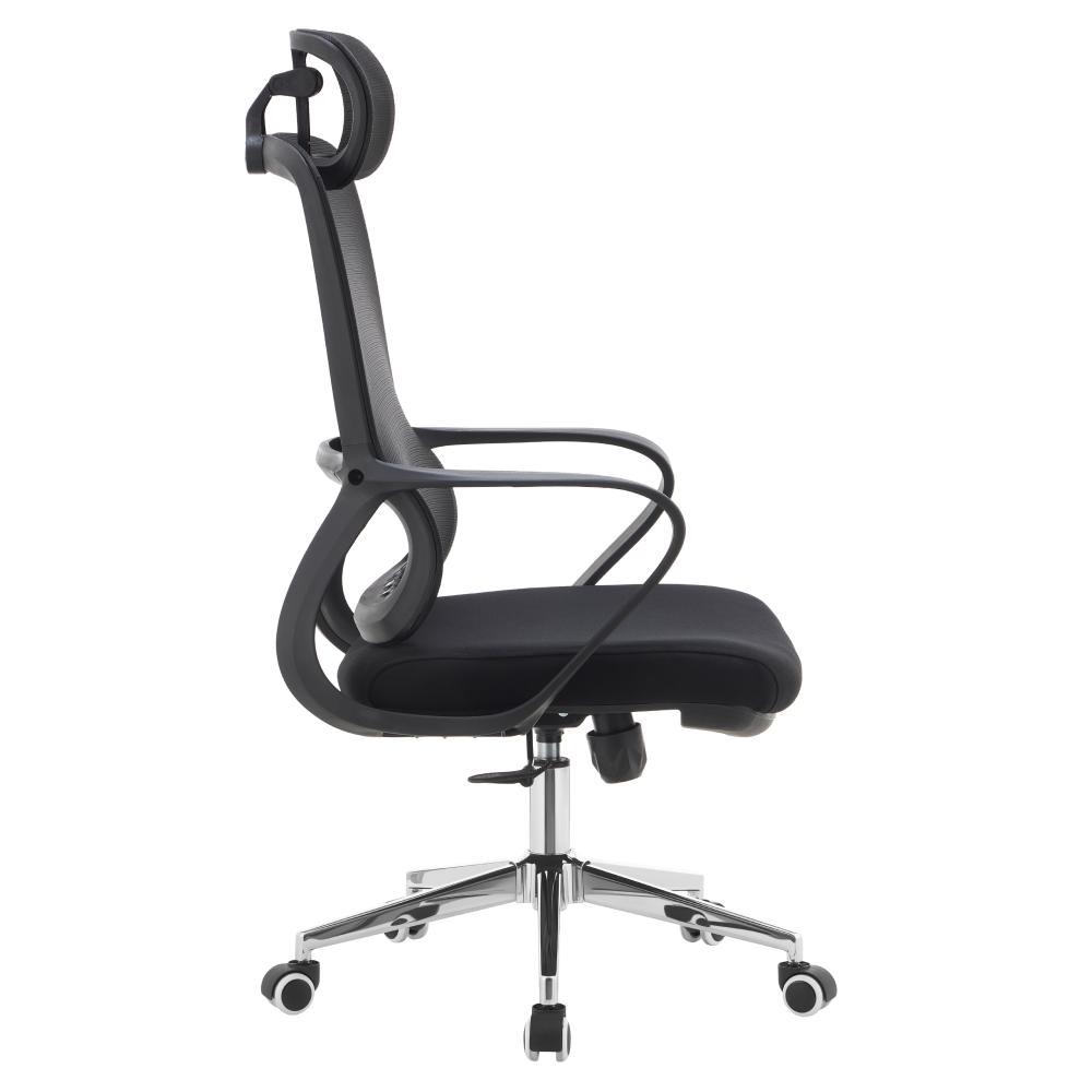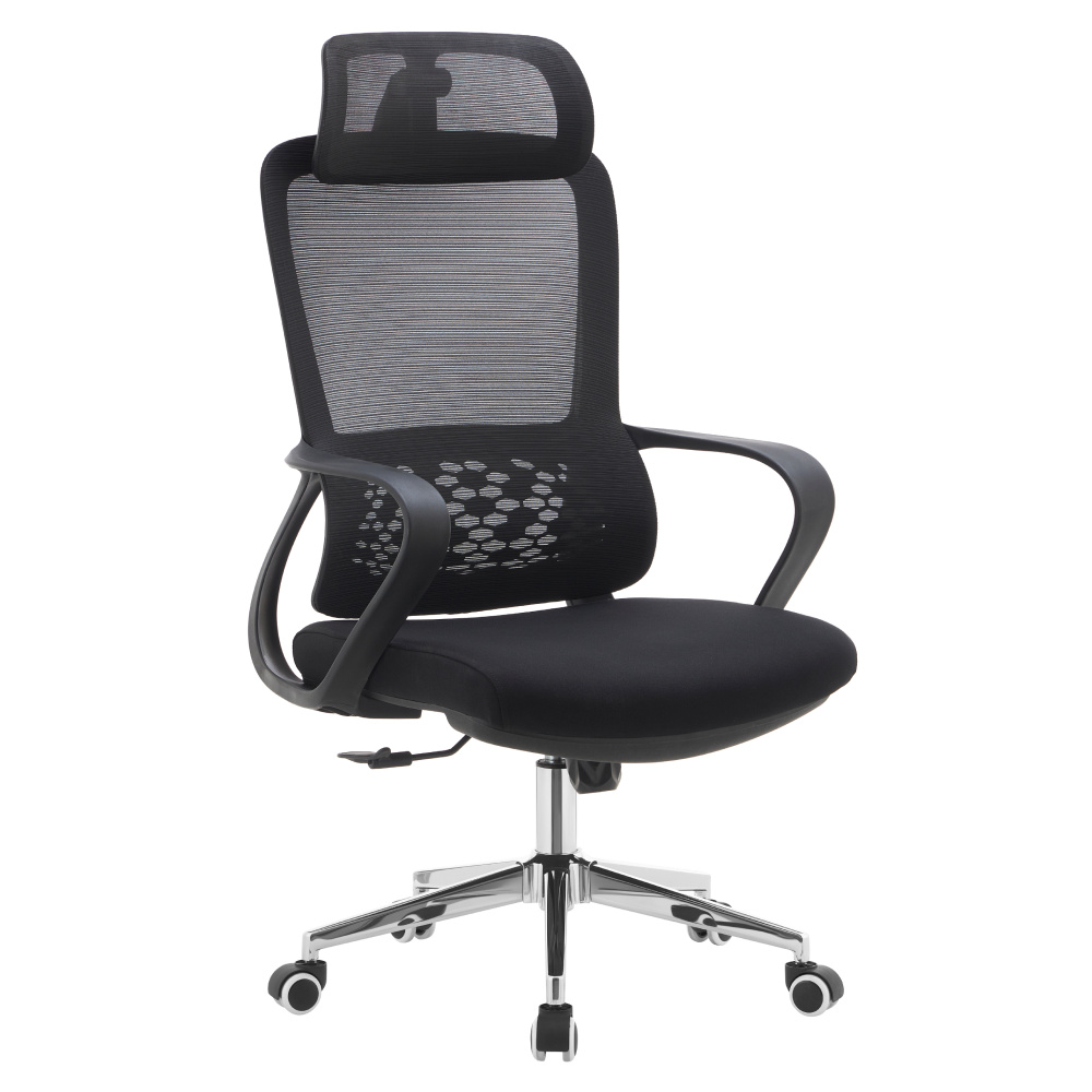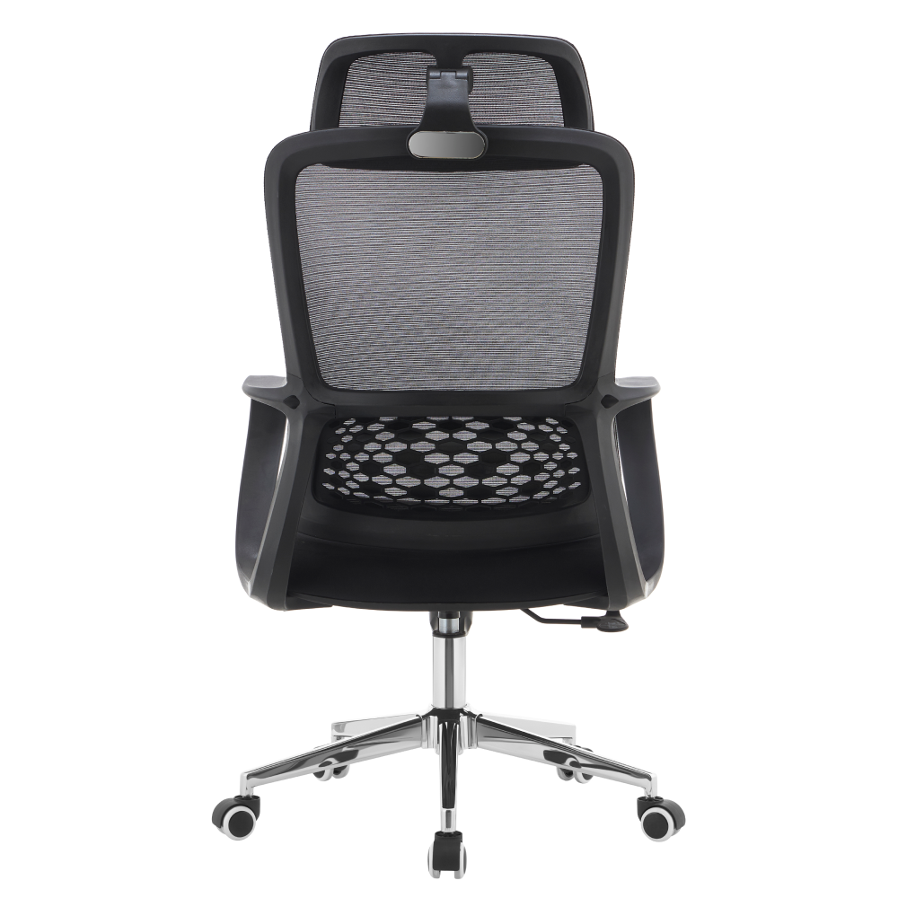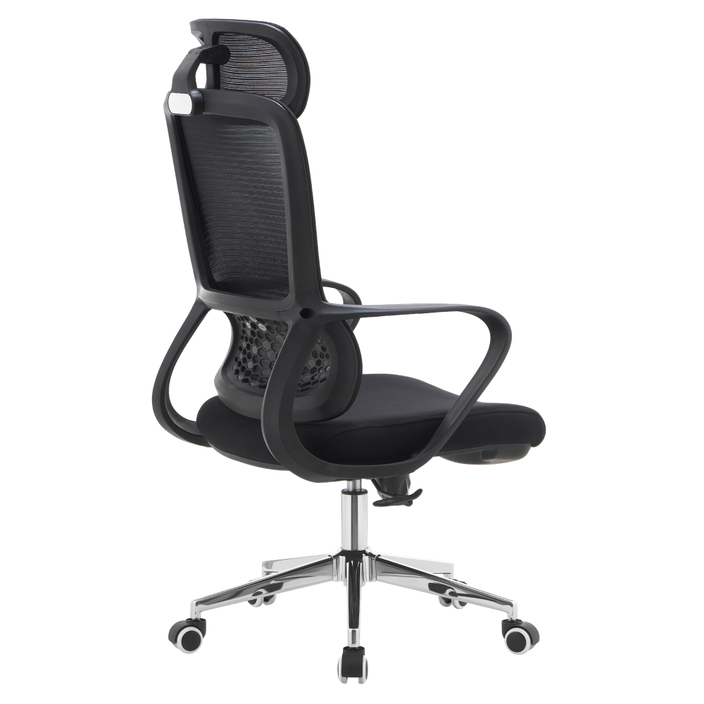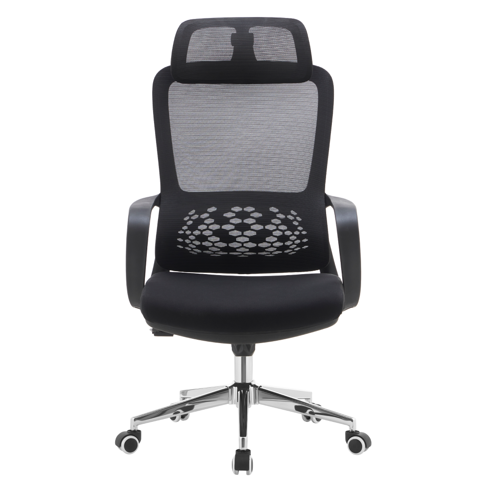 Materiál: síťovina/látka/plast/kov Oděruodolnost textilie podle testu Martindale: 80 000 oděrů Oděruodolnost síťoviny podle testu Martindale: 90 000 oděrů Barva: černá/chrom Rozměry (ŠxHxV): 60x63x120-128 cm Výška sedu: 52-60 cm Hloubka sedu: 48 cm Šířka sedu: 51 cm Šířka zádové opěrky: 47 cm Výška zádové opěrky: 77 cm Nosnost: 110 kg Hmotnost: 10,9 kg Funkce houpání Nastavitelná výška sedu Ergonomicky tvarovaná opěrka zad v bederní části Nastavitelná opěrka hlavy Univerzální kolečka Vhodné pro měkké i tvrdé podlahy Dodáváno v demontu