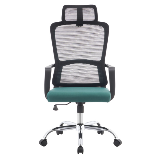 Materiál: síťovina/látka/plast/kov Oděruodolnost síťoviny podle testu Martindale: 90 000 oděrů Oděruodolnost textilie podle testu Martindale: 80 000 oděrů Barva: černá/zelená/chrom Rozměry (ŠxHxV): 57x57x116-126 cm Výška sedu: 43-53 cm Hloubka sedu: 51 cm Šířka sedu: 47 cm Šířka zádové opěrky: 50 cm Výška zádové opěrky: 73 cm Nosnost: 150 kg Otočná židle Mechanismus houpání Nastavitelná výška sedu S opěrkami na ruce S opěrkou hlavy Univerzální kolečka Vhodné pro měkké i tvrdé podlahy Dodáváno v demontu