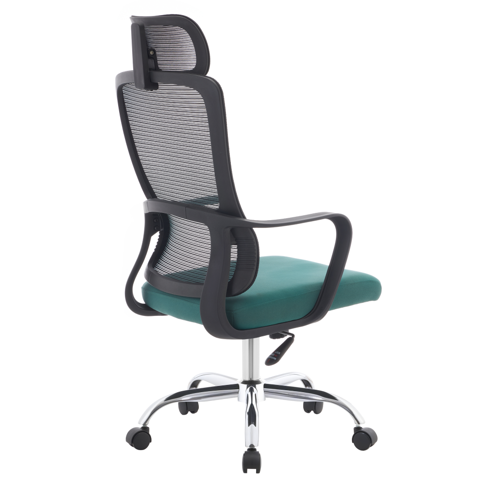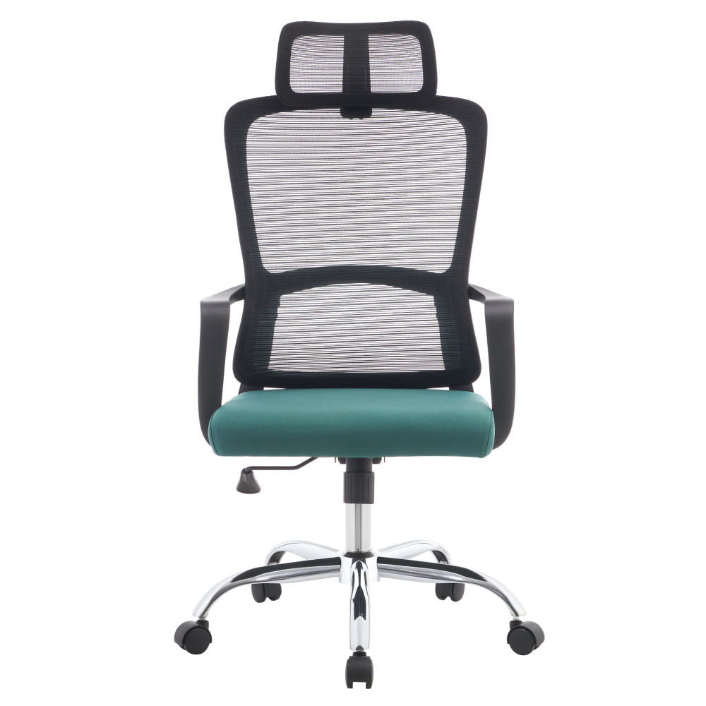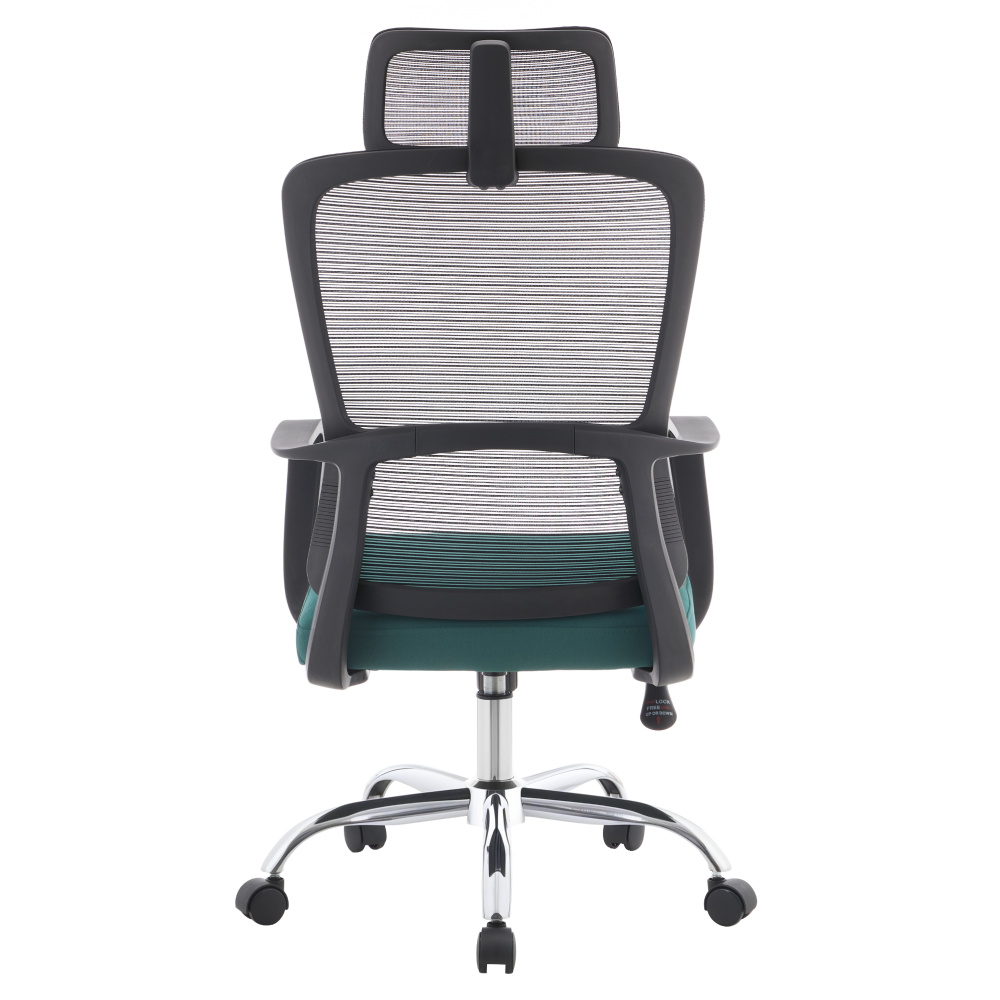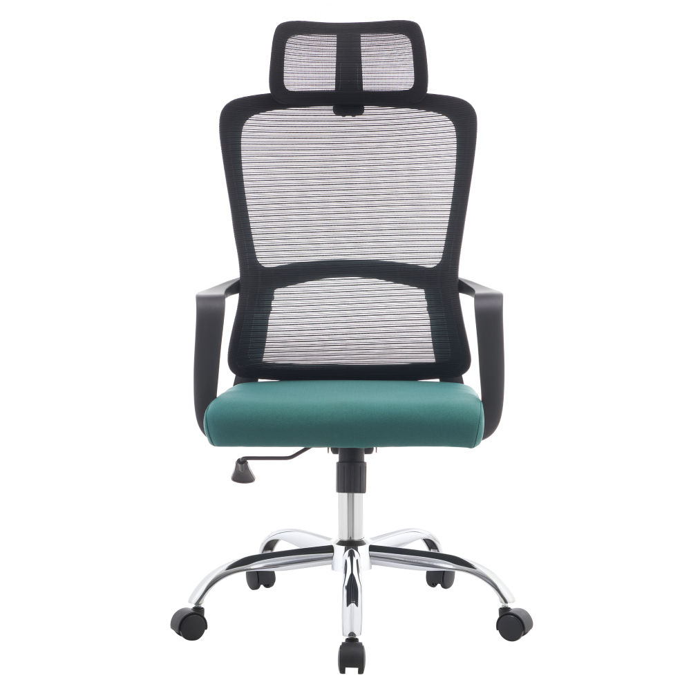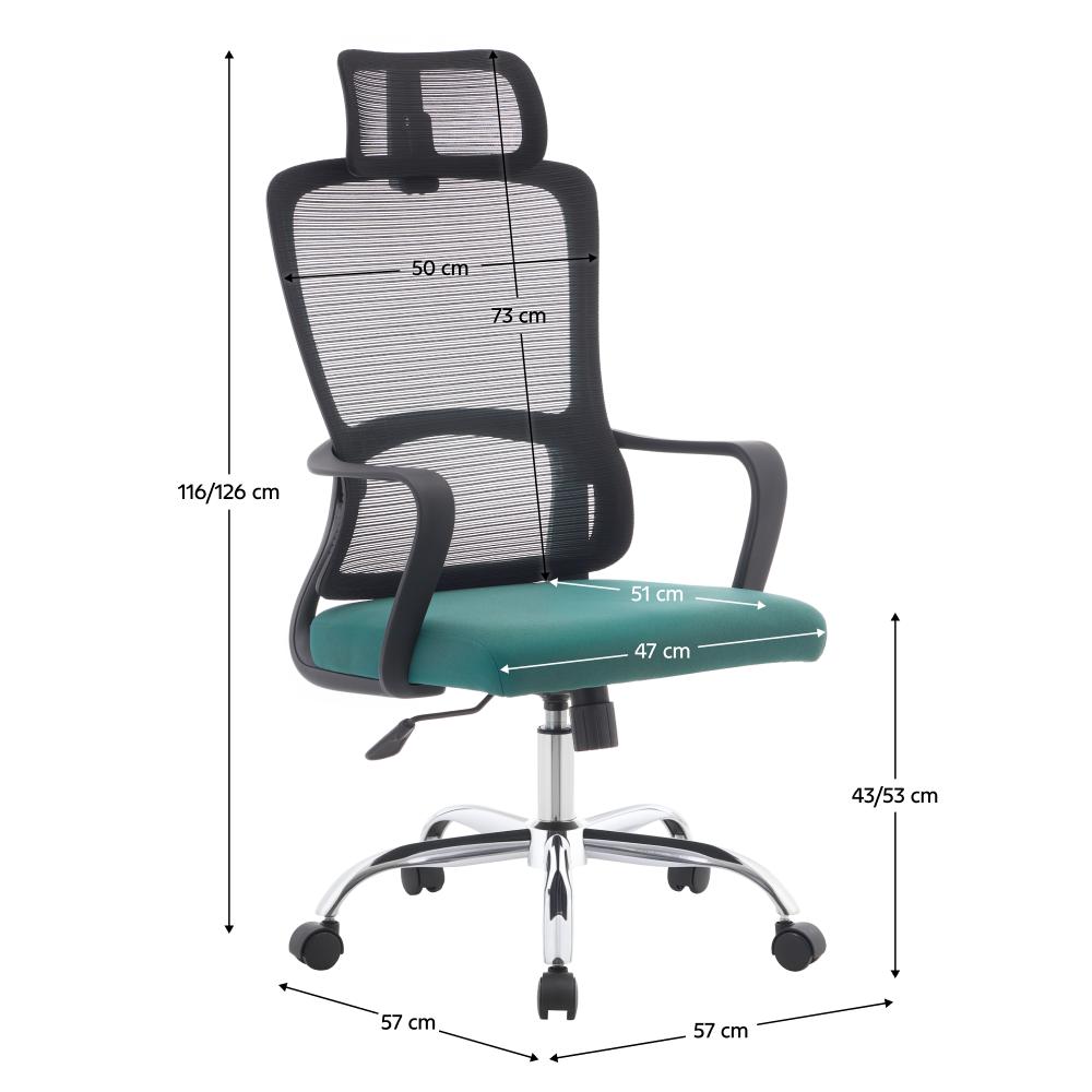 Materiál: síťovina/látka/plast/kov Oděruodolnost síťoviny podle testu Martindale: 90 000 oděrů Oděruodolnost textilie podle testu Martindale: 80 000 oděrů Barva: černá/zelená/chrom Rozměry (ŠxHxV): 57x57x116-126 cm Výška sedu: 43-53 cm Hloubka sedu: 51 cm Šířka sedu: 47 cm Šířka zádové opěrky: 50 cm Výška zádové opěrky: 73 cm Nosnost: 150 kg Otočná židle Mechanismus houpání Nastavitelná výška sedu S opěrkami na ruce S opěrkou hlavy Univerzální kolečka Vhodné pro měkké i tvrdé podlahy Dodáváno v demontu
