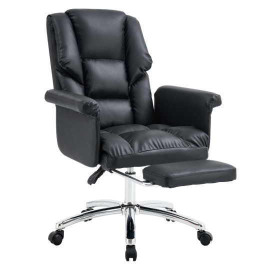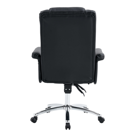 Materiál: ekokůže/kov Oděruodolnost ekokůže podle testu Martindale: 100 000 oděrů Barva: černá/chrom Rozměry (ŠxHxV): 66x64x106-116 cm Výška sedu: 48-58 cm Hloubka sedu: 41 cm Šířka sedu: 49 cm Výška zádové opěrky: 62 cm Šířka zádové opěrky: 49 cm Nosnost: 110 kg Výsuvná teleskopická podnož Otočná o 360° Tvarované sedátko Možnost nastavit výšku sedu Pětiramenná chromová podstava Univerzální kolečka Vhodné pro tvrdé i měkké podlahy Dodáváno v demontu