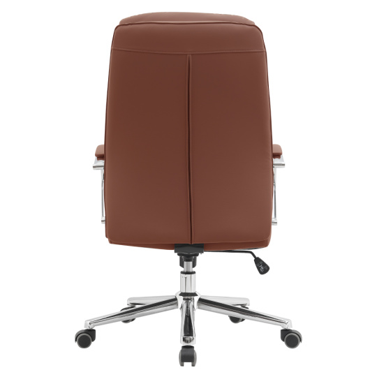 Materiál: ekokůže/kov Oděruodolnost ekokůže podle testu Martindale: 100 000 oděrů Barva: hnědá camel/chrom Rozměry (ŠxHxV): 58x65x102/108 cm Výška sedu: 44/50 cm Hloubka sedu: 42 cm Šířka sedu: 50 cm Šířka zádové opěrky: 50,5 cm Výška zádové opěrky: 67 cm Nosnost: 130 kg Hmotnost: 15,6 kg S čaluněnými opěrkami na ruce Otočné Možnost nastavit výšku sedu Mechanismus houpání Pětiramenná chromová podstava Univerzální kolečka Vhodné pro měkké i tvrdé podlahy Dodáváno v demontu