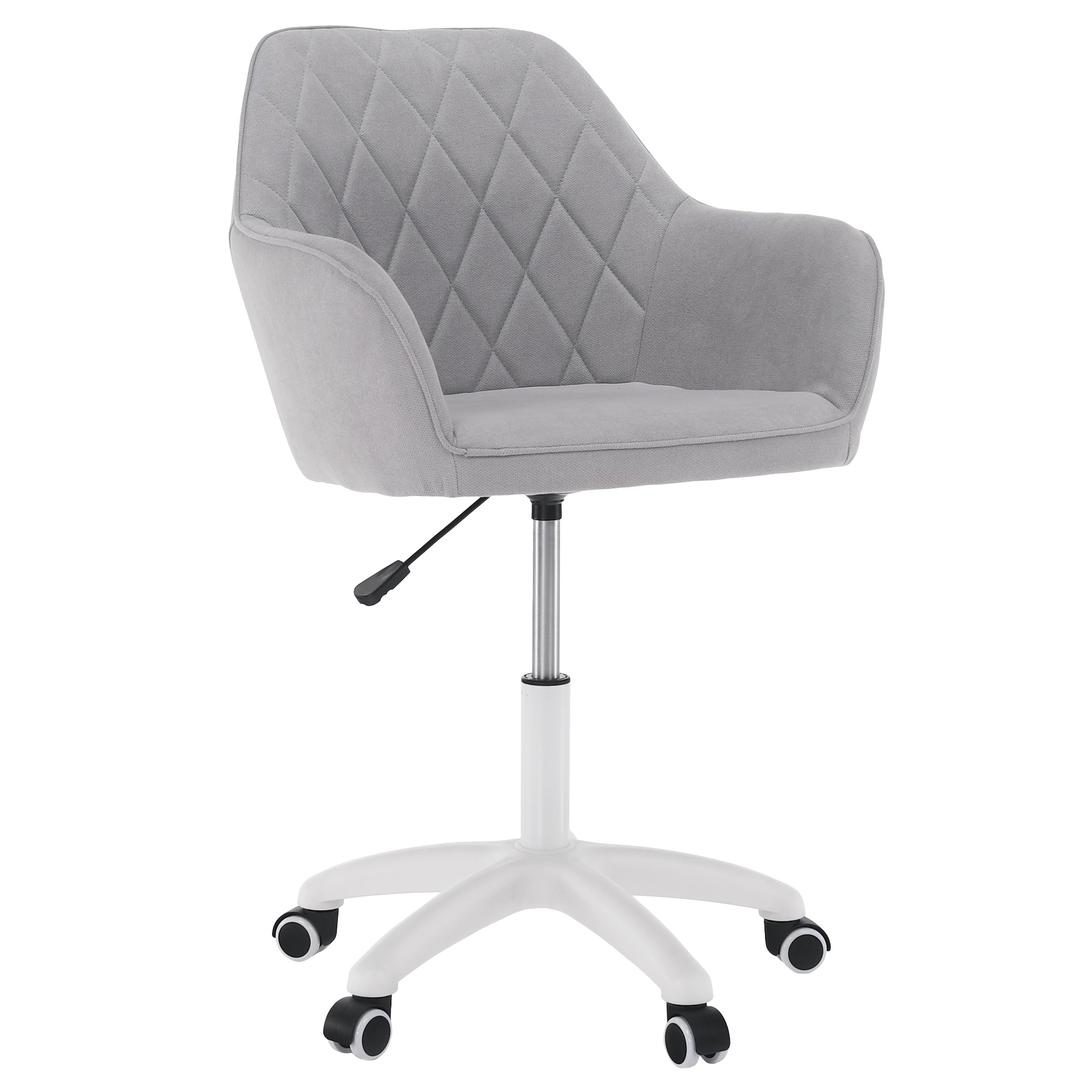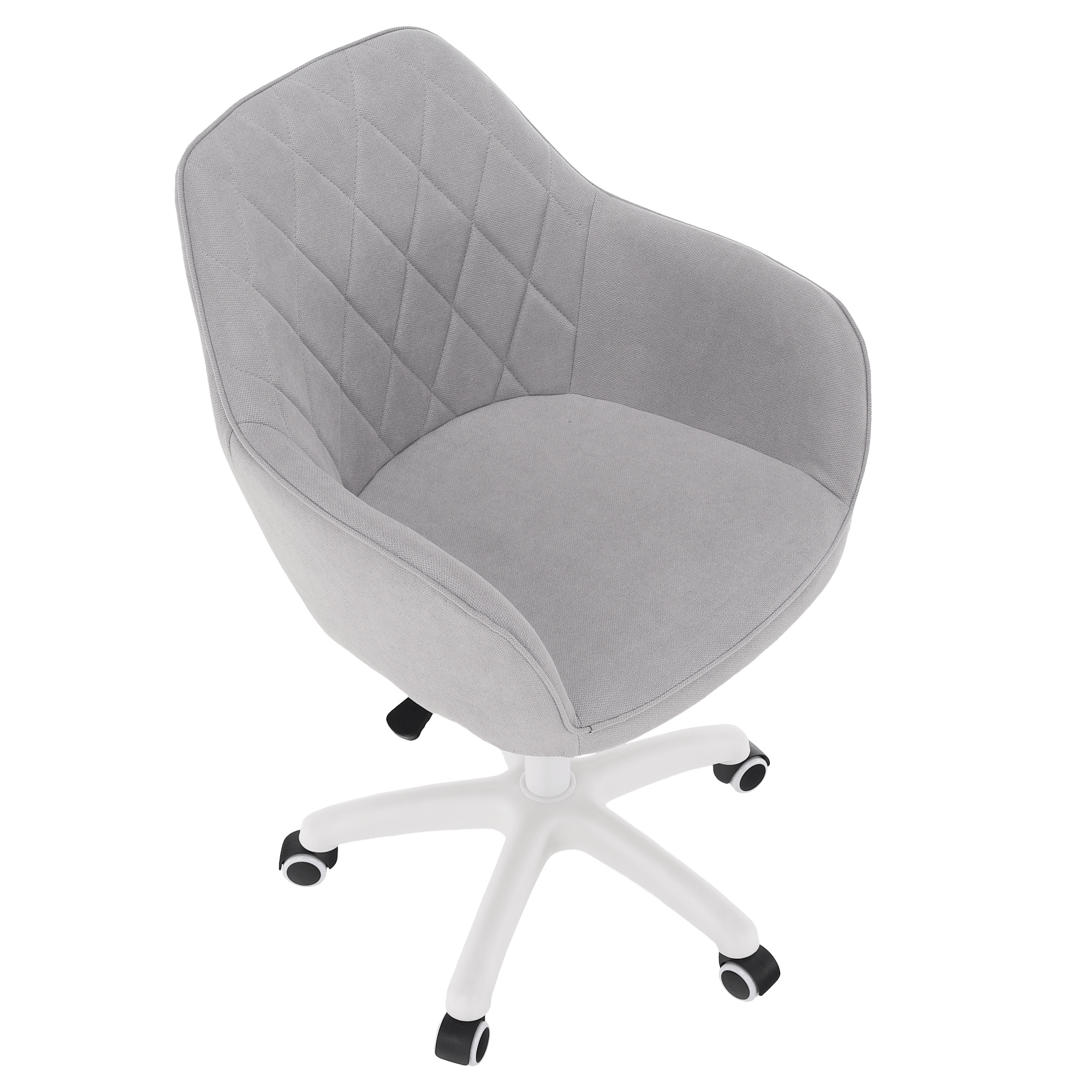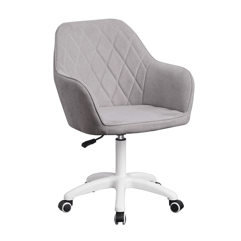Materiál: látka/plast/kov Barva: šedá / bílá Oděruodolnost textilie podle testu Martindale: 80 000 oděrek Rozměry (ŠxHxV): 60x62x85-100cm Nastavení výšky křesla Nastavitelná výška sedu: 46-61 cm Hloubka sedu: 47cm Maximální nosnost: 90 kg otáčivé Pěticípá plastová růžice na kolečkách Univerzální kolečka vhodná pro měkké i tvrdé podlahy Dodávané v demontu