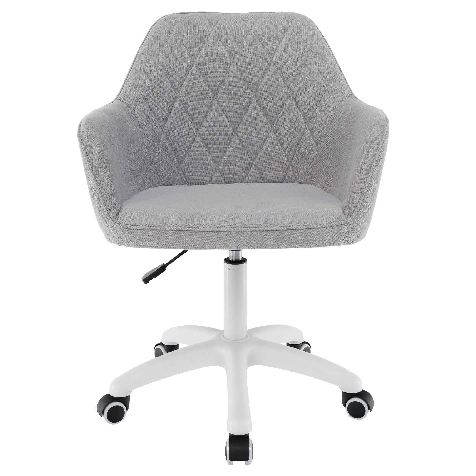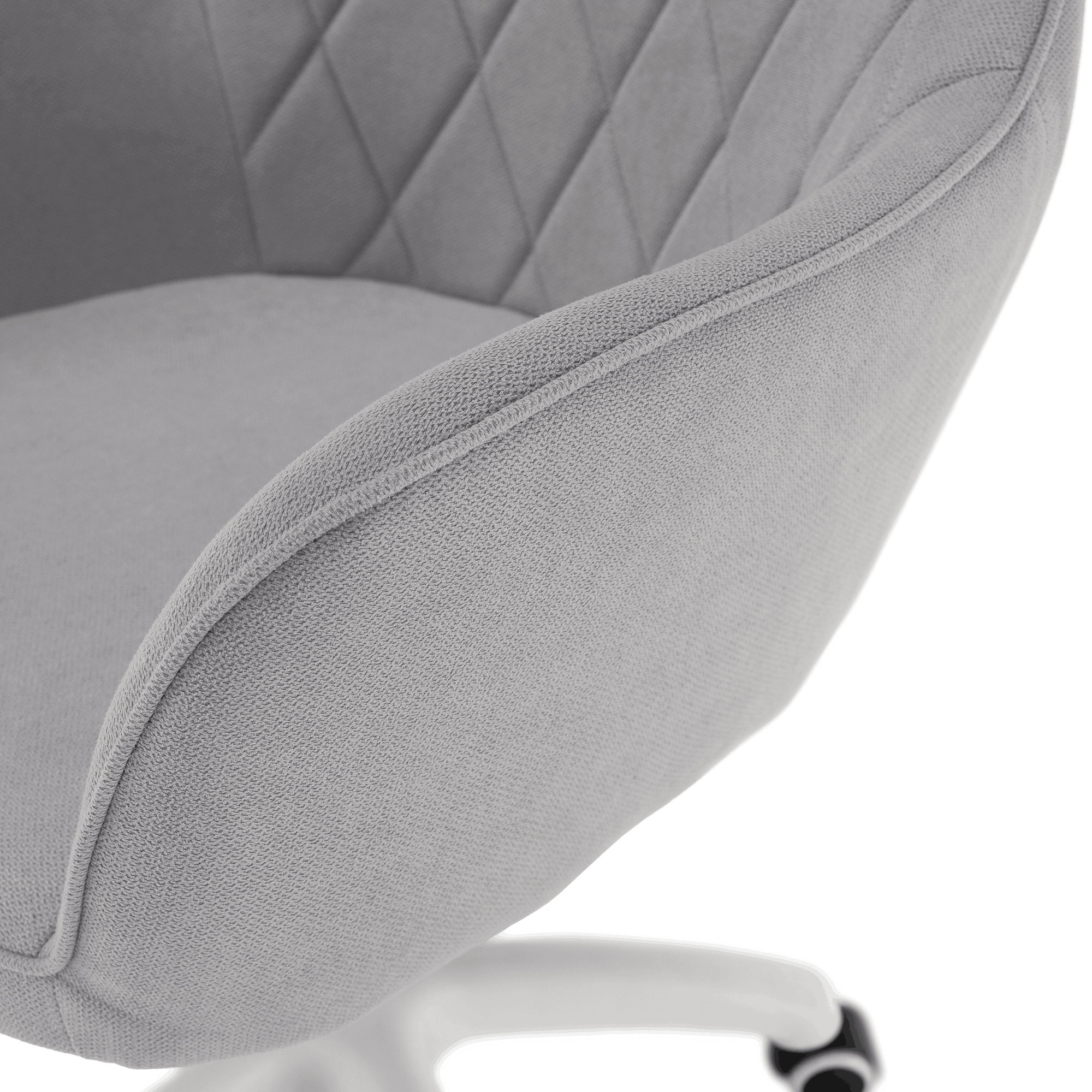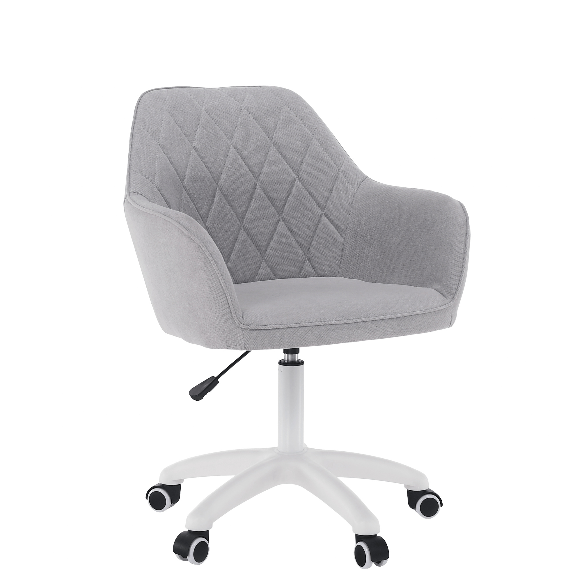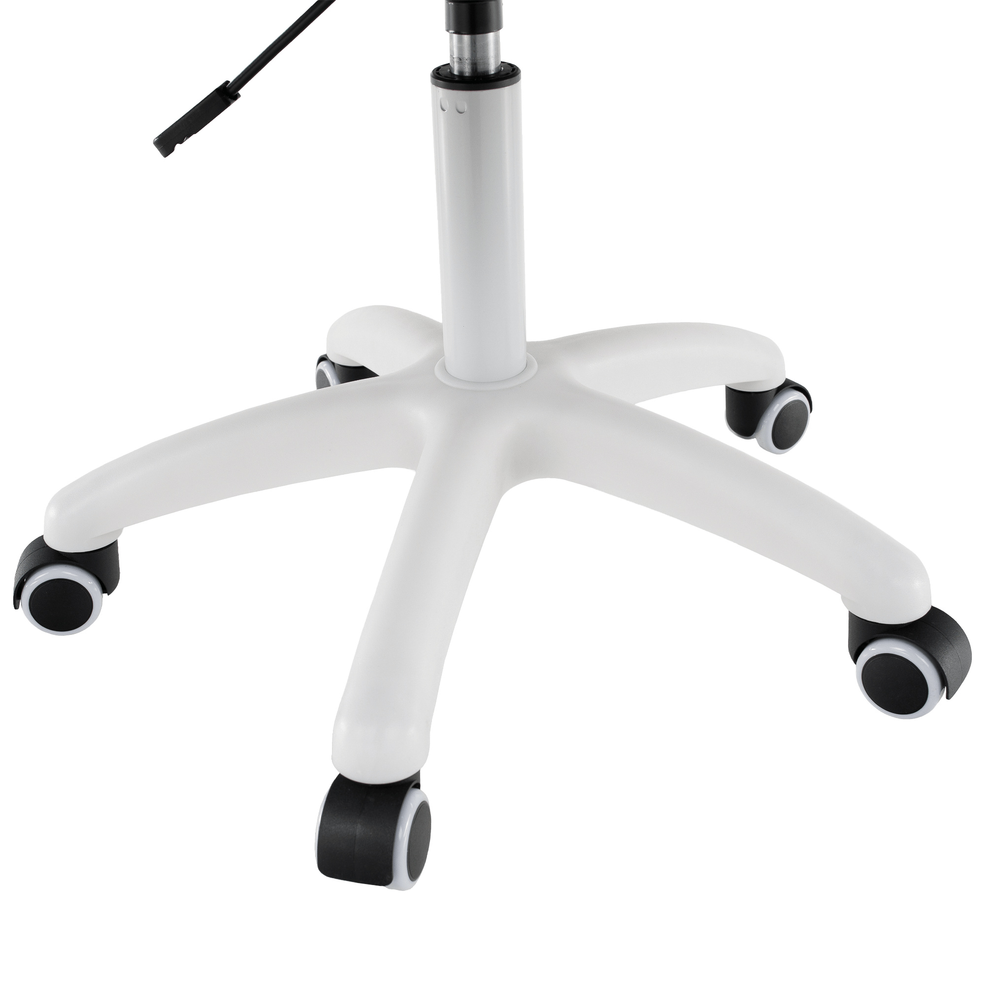 Materiál: látka/plast/kov Barva: šedá / bílá Oděruodolnost textilie podle testu Martindale: 80 000 oděrek Rozměry (ŠxHxV): 60x62x85-100cm Nastavení výšky křesla Nastavitelná výška sedu: 46-61 cm Hloubka sedu: 47cm Maximální nosnost: 90 kg otáčivé Pěticípá plastová růžice na kolečkách Univerzální kolečka vhodná pro měkké i tvrdé podlahy Dodávané v demontu