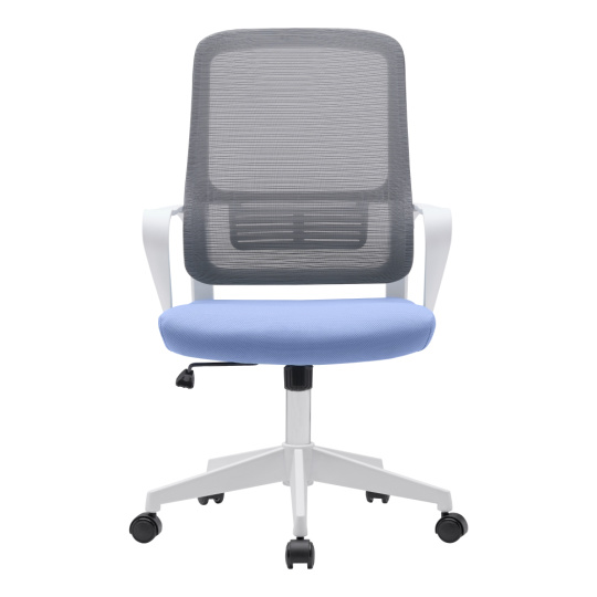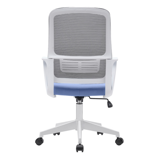 Materiál: síťovina/plast Oděruodolnost síťoviny podle testu Martindale: 90 000 oděrů Barva: neomint-světle modrá/šedá/bílá Rozměry (ŠxHxV): 63x61x99-109 cm Výška sedu: 45-55 cm Hloubka sedu: 52 cm Šířka sedu: 51,5 cm Výška zádové opěrky: 58 cm Šířka zádové opěrky: 44 cm Nosnost: 100 kg Možnost nastavit výšku sedu Pětiramenná plastová podstava Univerzální kolečka Vhodné pro tvrdé i měkké podlahy Mechanismus houpání Dodáváno v demontu