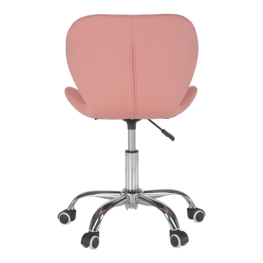 Provedení: růžová/chrom Materiál: ekokůže/kov Oděruodolnost textilie podle testu Martindale: 100 000 oděrů Rozměry (ŠxHxV): 47x56x73-84 cm Výška sedu: 40-52 cm Hloubka sedu: 37 cm Výška zádové opěrky: 32 cm Šířka zádové opěrky: 42 cm Nosnost: 110 kg Univerzální kolečka vhodná pro měkké i tvrdé podlahy Nastavitelná výška sedu Dodáváno v demontu.