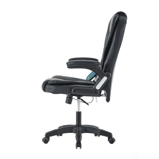 Kancelářské křeslo s funkcí masáže  Materiál: ekokůže / plast Oděruodolnost textilie podle testu Martindale: 100 000 oděrek Barva: černá Rozměry (ŠxHxV): 64x70x113-123 cm Hloubka sedu: 51 cm funkce masáže  8 vibračních motorků 5 masážních funkcí nastavení intenzity 4 masážní zóny časovač Hmotnost: 15 kg Nosnost: 110 kg Opěrka zad (ŠxV): 52x76 cm Sedadlo (ŠxH): 52x52 cm Dodávané v demontu.