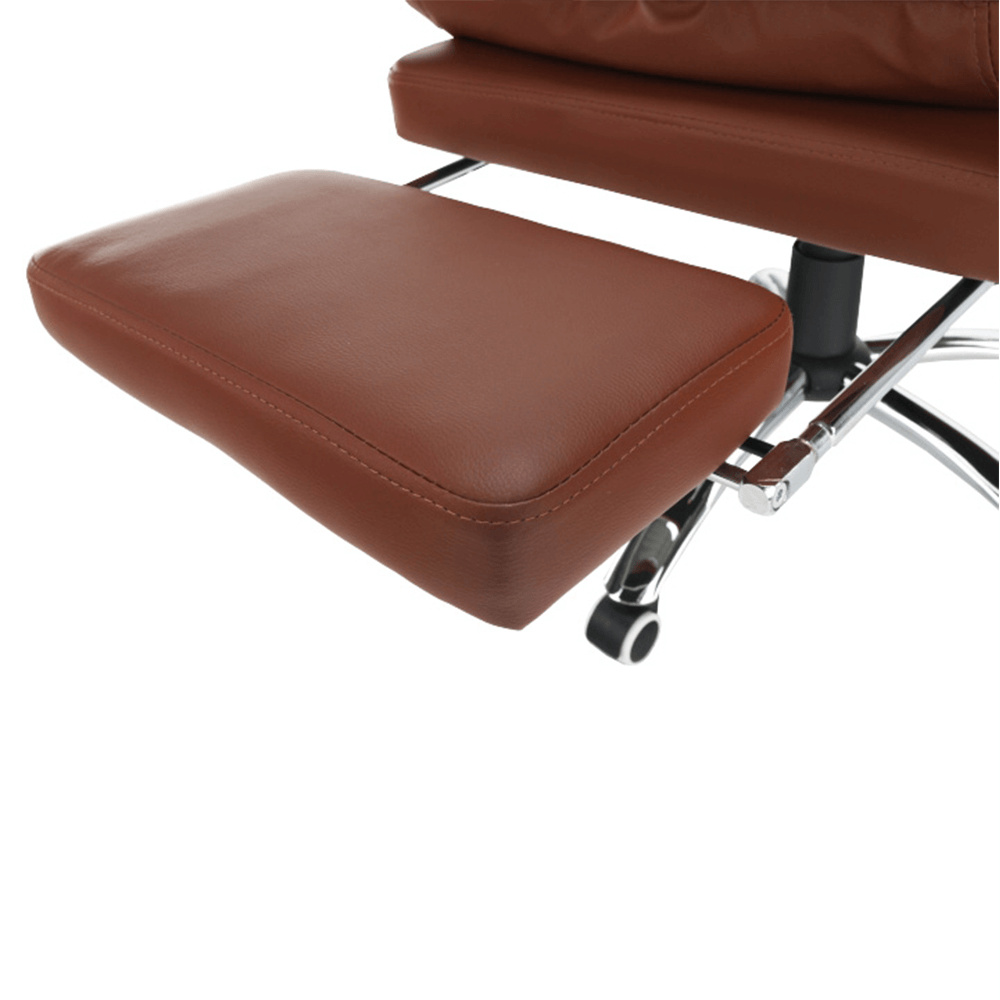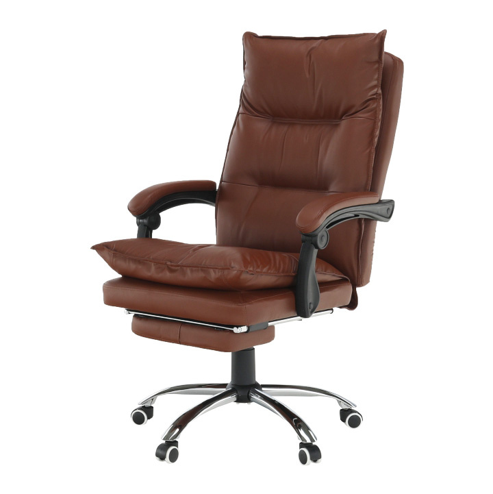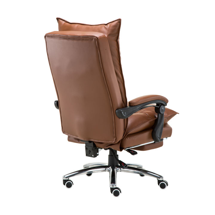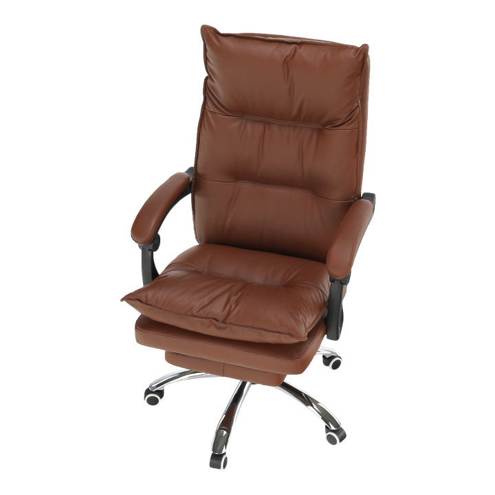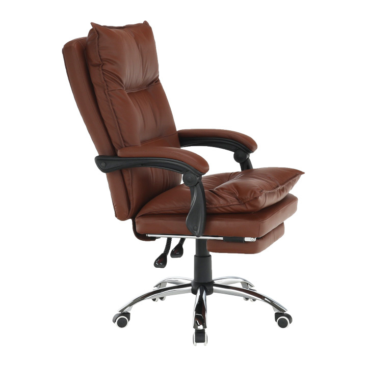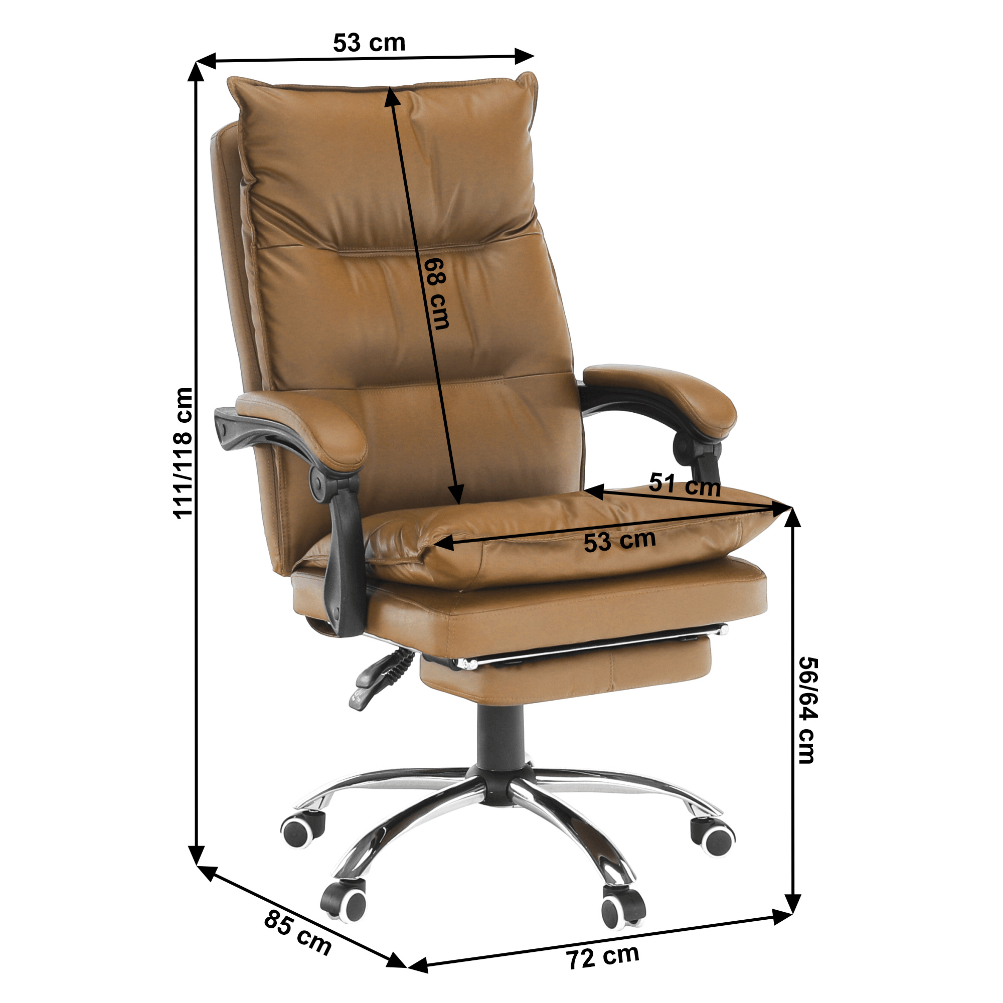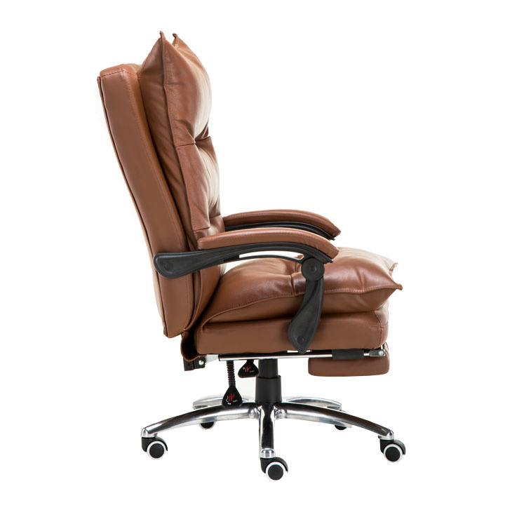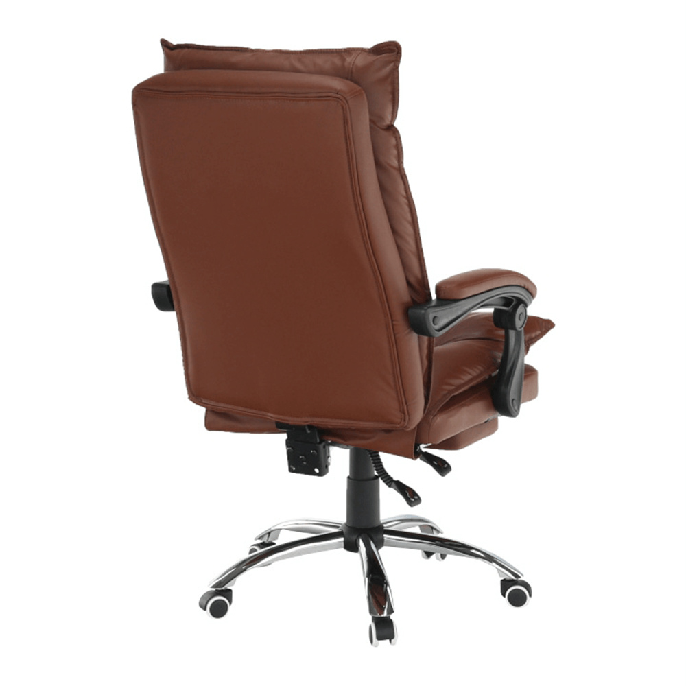 Kancelářské křeslo DRAKE s polohovací opěrkou zad a výsuvnou podnoží. Materiál: ekokůže / kov Oděruodolnost ekokůže podle testu Martindale: 100 000 oděrek Barva: hnědá / chrom Rozměry (ŠxHxV): 72x85x111-118 cm Výška sedu: 56-64 cm Hloubka sedu: 51 Výška od země po opěrku na ruce: 67-75 cm Nosnost: 110 kg Opěrka zad (ŠxV): 53x68 cm Sedadlo (ŠxH): 53x50 cm Výsuvná teleskopická podnož Otočná o 360 ° Nastavení sklonu opěradla 90 ° - 135 ° S ergonomickými polštáři na opěradle a sedadle Možnost nastavit výšku sedu Rozšířená zádová část Čalouněné plastové područky Pětiprvková chromová podstava Univerzální kolečka vhodná pro měkké i tvrdé podlahy Dodávané v demontu