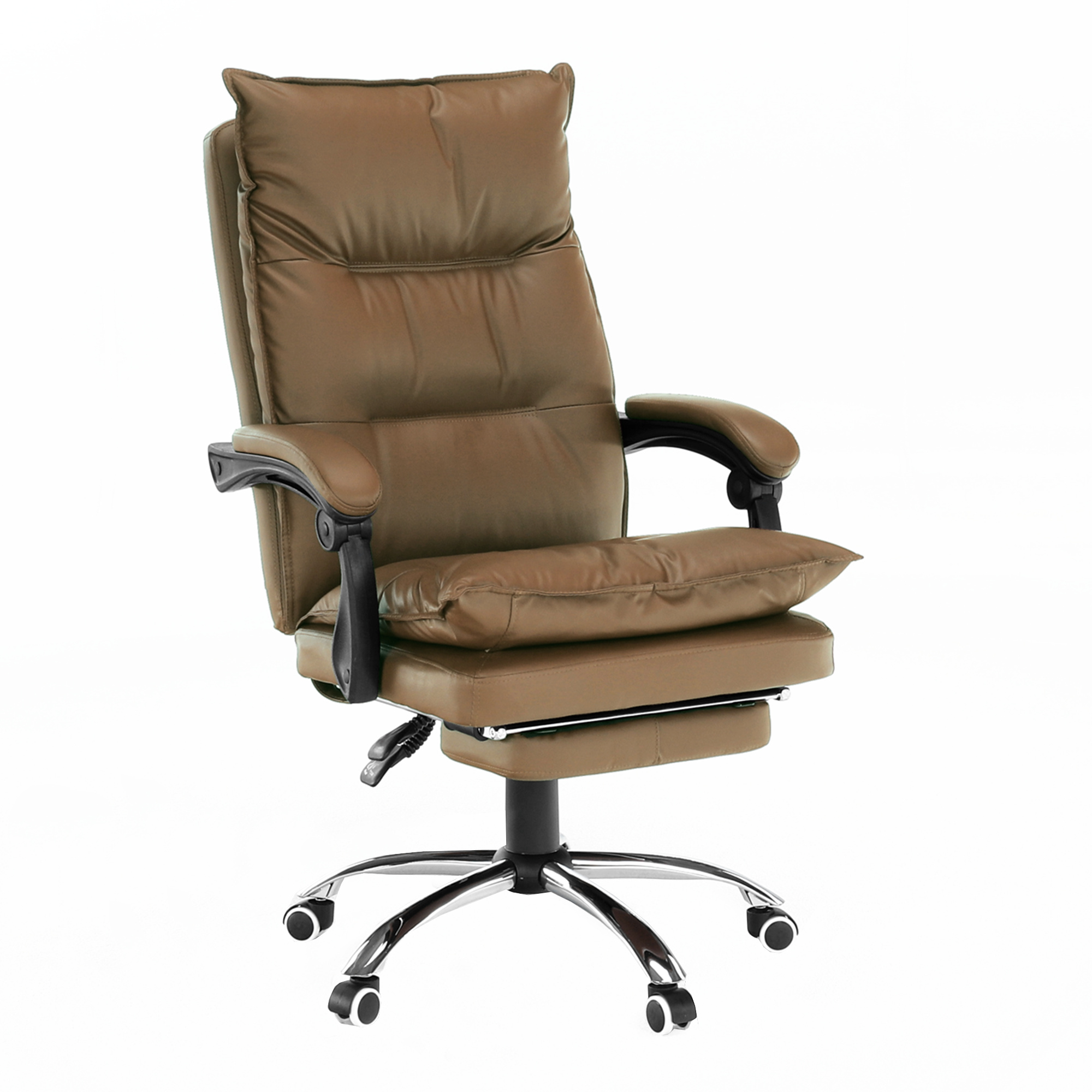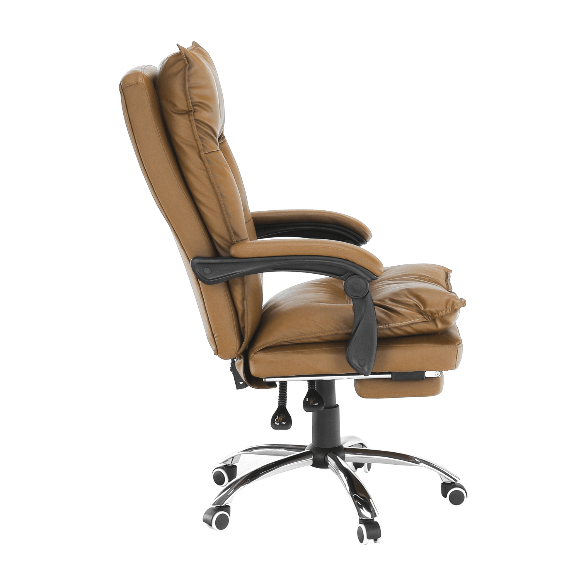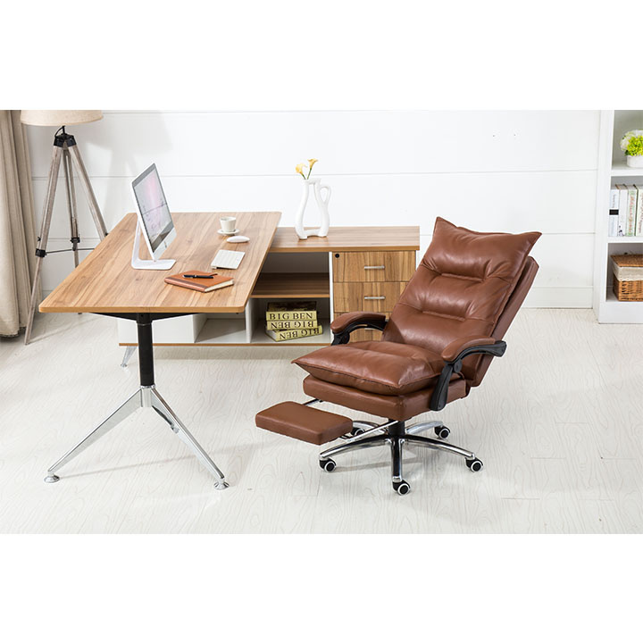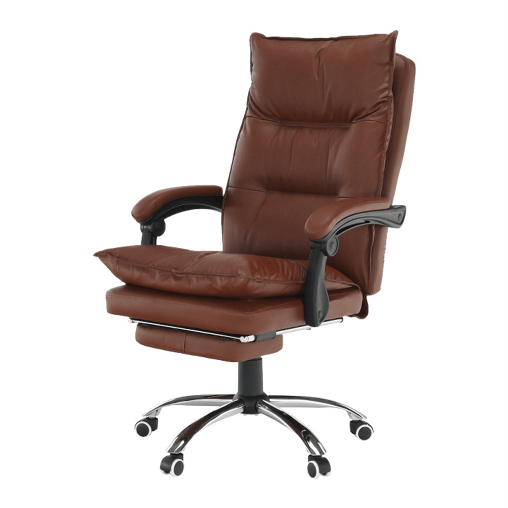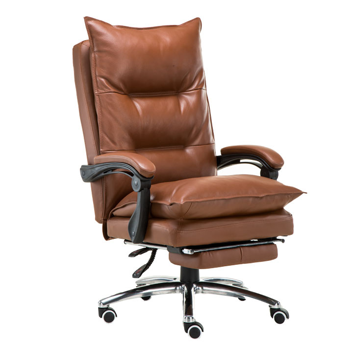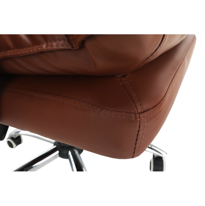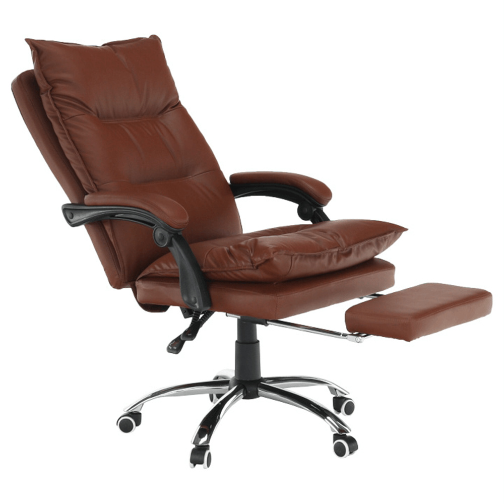 Kancelářské křeslo DRAKE s polohovací opěrkou zad a výsuvnou podnoží. Materiál: ekokůže / kov Oděruodolnost ekokůže podle testu Martindale: 100 000 oděrek Barva: hnědá / chrom Rozměry (ŠxHxV): 72x85x111-118 cm Výška sedu: 56-64 cm Hloubka sedu: 51 Výška od země po opěrku na ruce: 67-75 cm Nosnost: 110 kg Opěrka zad (ŠxV): 53x68 cm Sedadlo (ŠxH): 53x50 cm Výsuvná teleskopická podnož Otočná o 360 ° Nastavení sklonu opěradla 90 ° - 135 ° S ergonomickými polštáři na opěradle a sedadle Možnost nastavit výšku sedu Rozšířená zádová část Čalouněné plastové područky Pětiprvková chromová podstava Univerzální kolečka vhodná pro měkké i tvrdé podlahy Dodávané v demontu