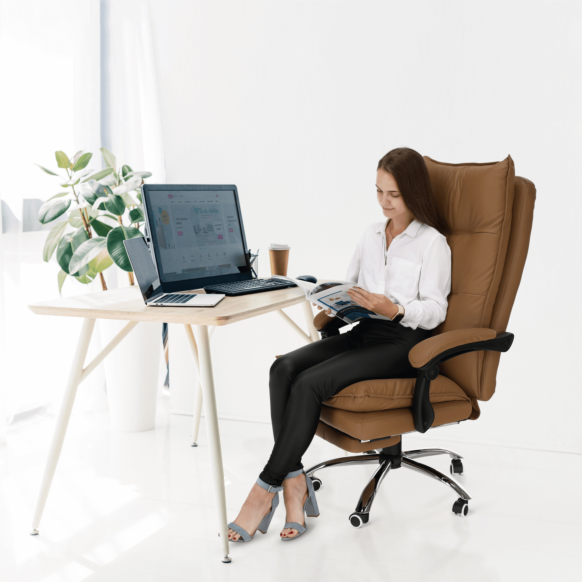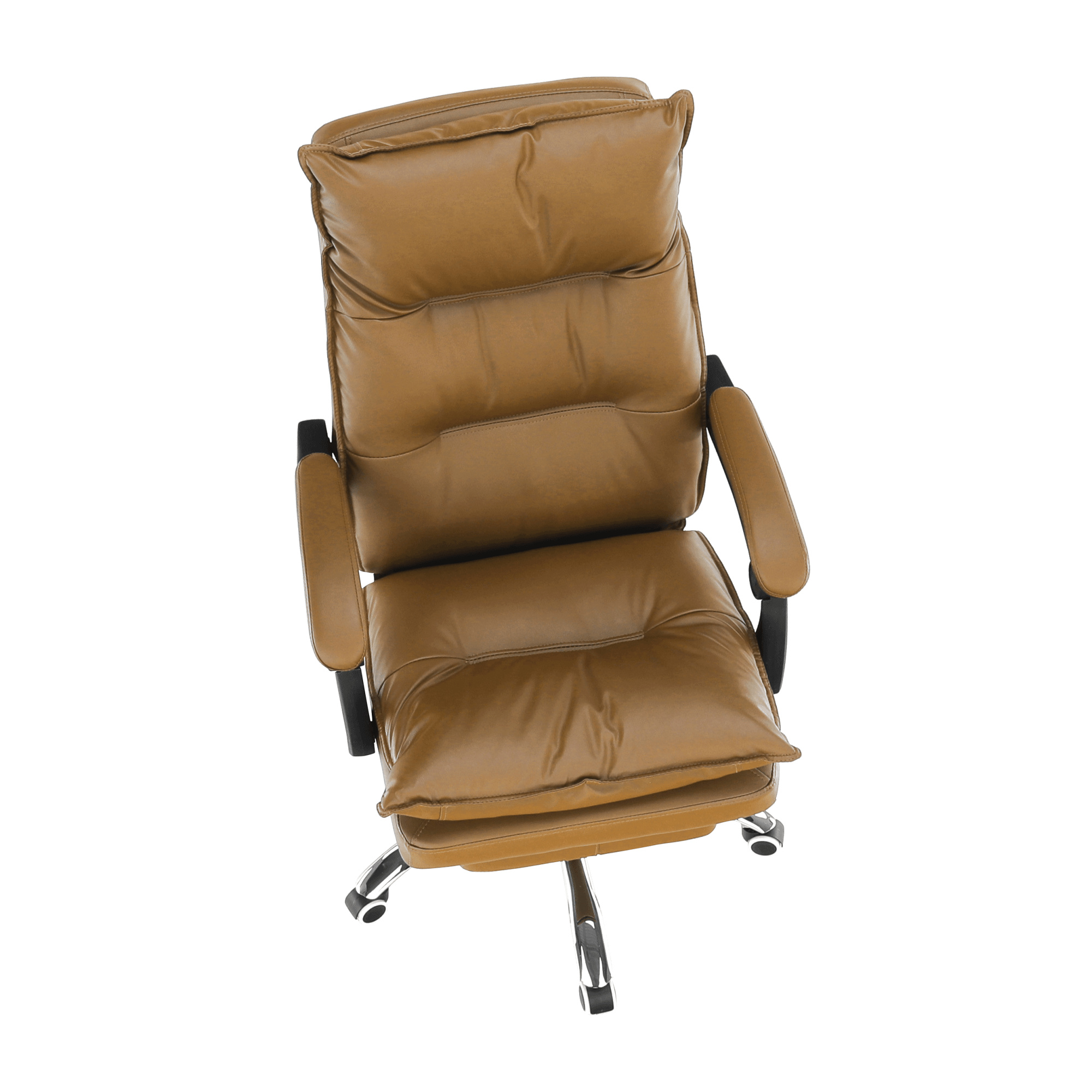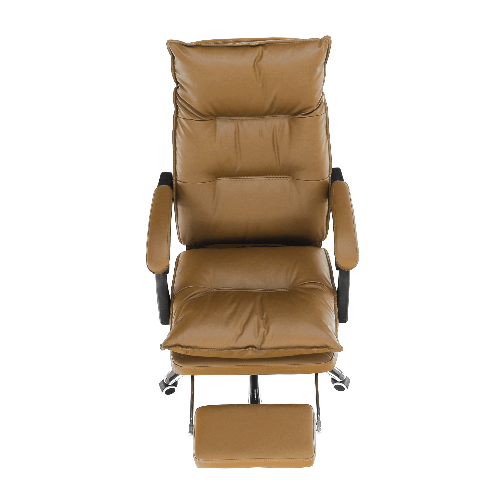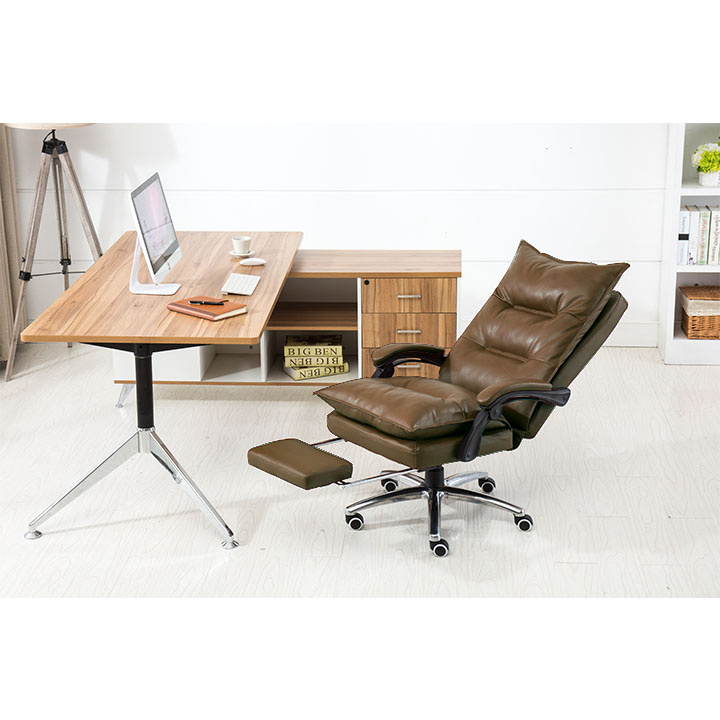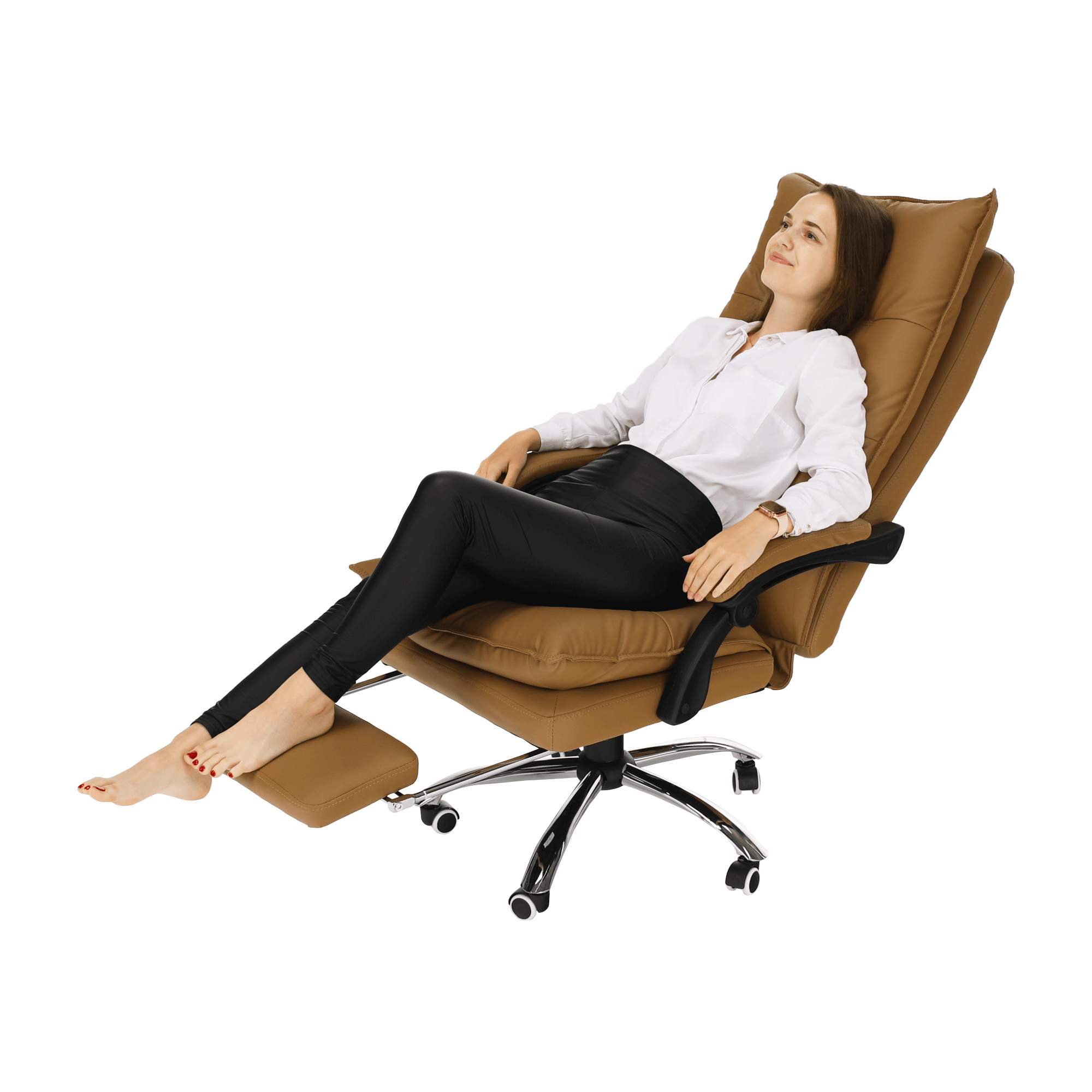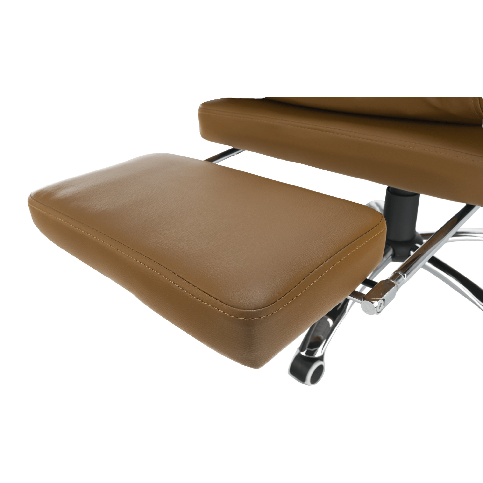 Kancelářské křeslo DRAKE s polohovací opěrkou zad a výsuvnou podnoží. Materiál: ekokůže / kov Oděruodolnost ekokůže podle testu Martindale: 100 000 oděrek Barva: hnědá / chrom Rozměry (ŠxHxV): 72x85x111-118 cm Výška sedu: 56-64 cm Hloubka sedu: 51 Výška od země po opěrku na ruce: 67-75 cm Nosnost: 110 kg Opěrka zad (ŠxV): 53x68 cm Sedadlo (ŠxH): 53x50 cm Výsuvná teleskopická podnož Otočná o 360 ° Nastavení sklonu opěradla 90 ° - 135 ° S ergonomickými polštáři na opěradle a sedadle Možnost nastavit výšku sedu Rozšířená zádová část Čalouněné plastové područky Pětiprvková chromová podstava Univerzální kolečka vhodná pro měkké i tvrdé podlahy Dodávané v demontu