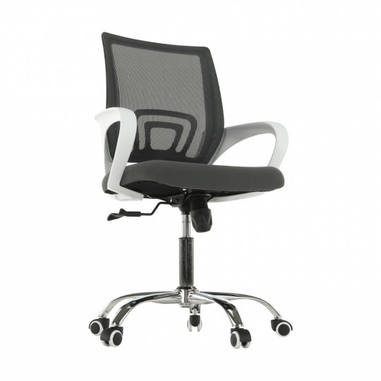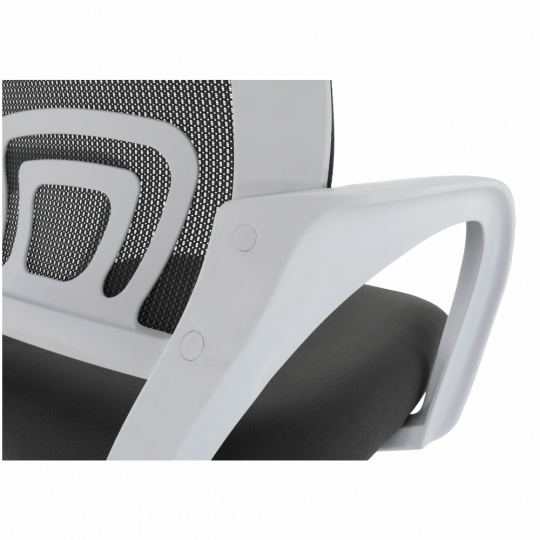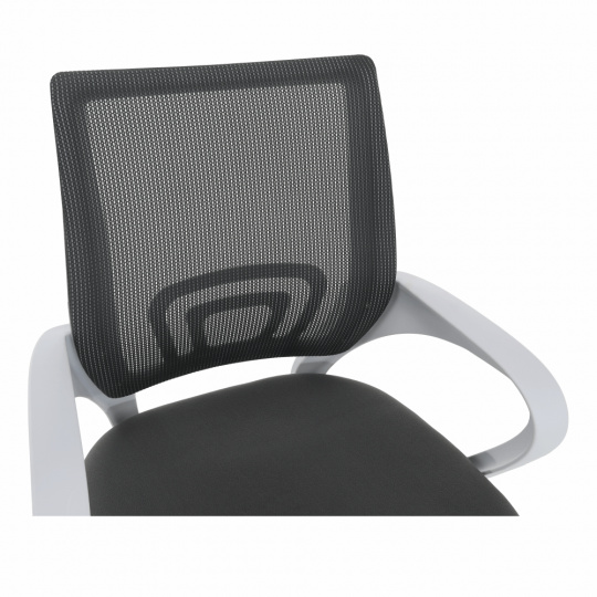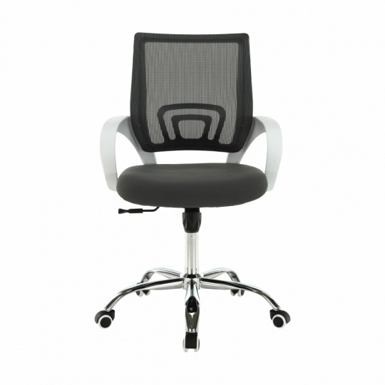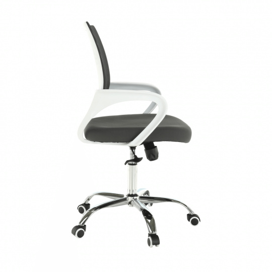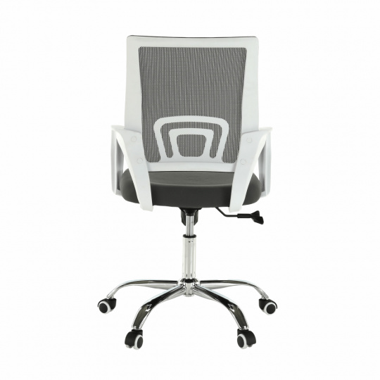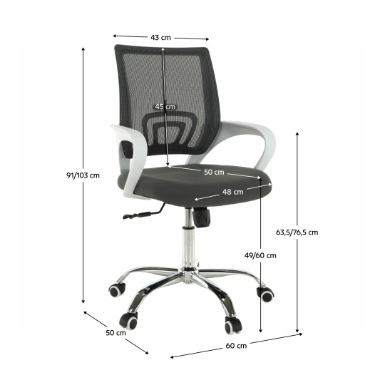 Materiál: látka / plast / kov Oděruodolnost textilie podle testu Martindale: 90 000 oděrek Barva: šedá / bílá / chromovaná Rozměry (ŠxHxV): 60x50x91-103 cm Nastavitelná výška sedu: 49-60 cm Hloubka sedu: 50 cm Šířka sedu: 48 cm Výška zádové opěrky (bez opěrky hlavy): 45 cm Šířka zádové opěrky: 43 cm Nosnost: 100 kg Univerzální kolečka vhodná pro měkké i tvrdé podlahy mechanismus houpání Plastová pěticípá růžice Plastové područky Plastová bederní podpěra Dodávané v demontu