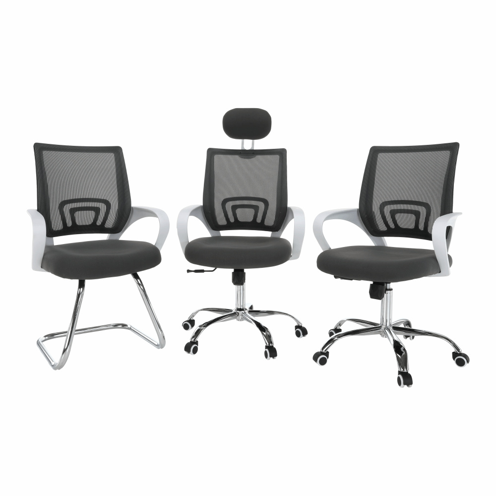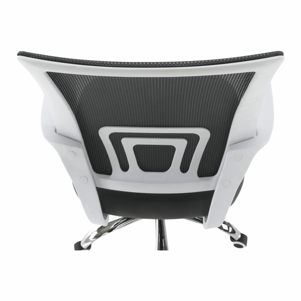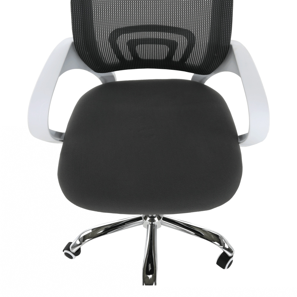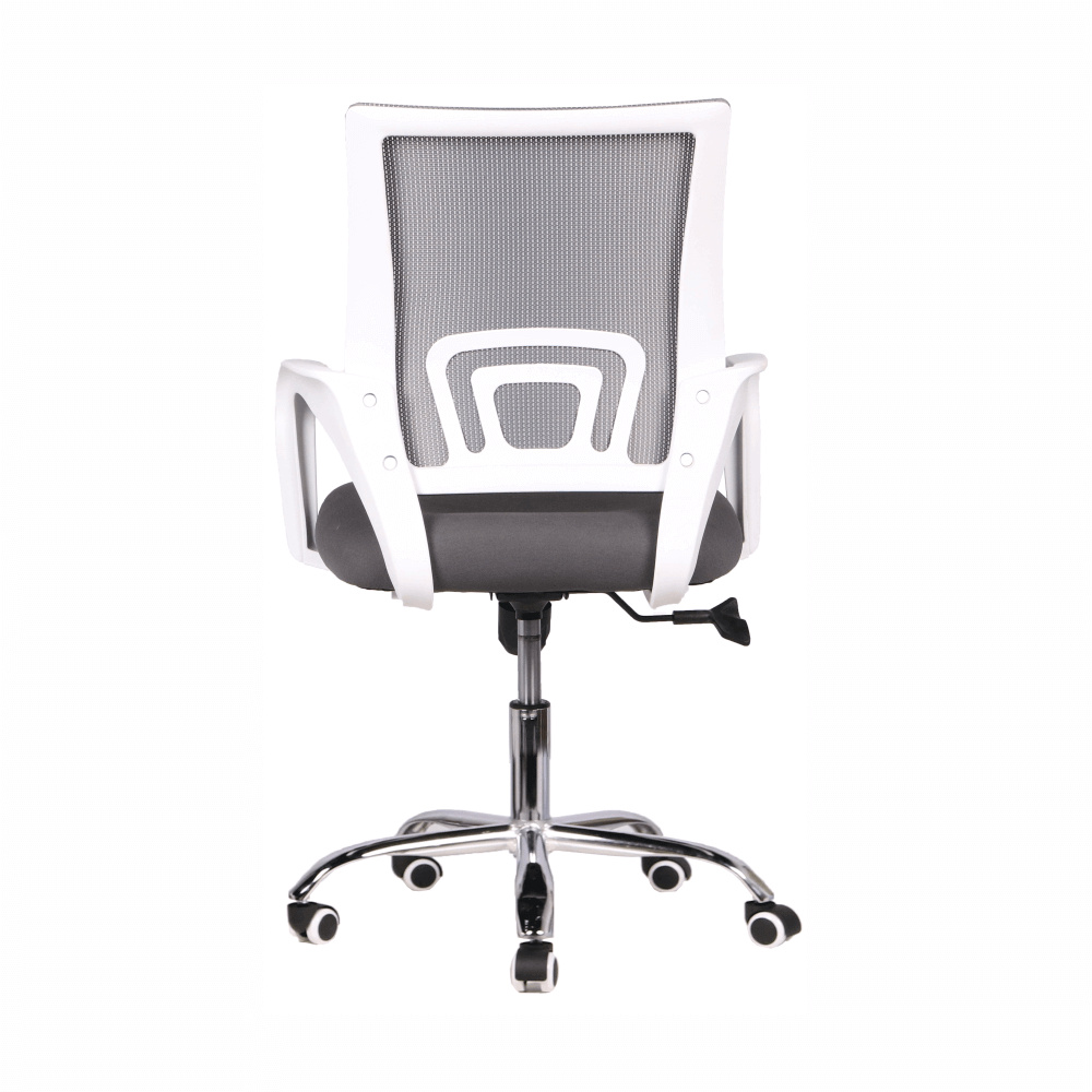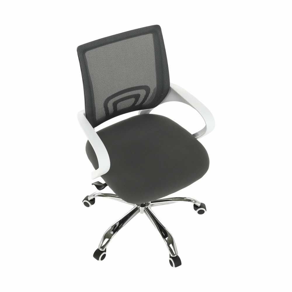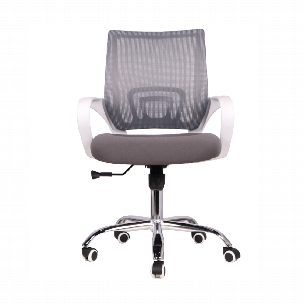 Materiál: látka / plast / kov Oděruodolnost textilie podle testu Martindale: 90 000 oděrek Barva: šedá / bílá / chromovaná Rozměry (ŠxHxV): 60x50x91-103 cm Nastavitelná výška sedu: 49-60 cm Hloubka sedu: 50 cm Šířka sedu: 48 cm Výška zádové opěrky (bez opěrky hlavy): 45 cm Šířka zádové opěrky: 43 cm Nosnost: 100 kg Univerzální kolečka vhodná pro měkké i tvrdé podlahy mechanismus houpání Plastová pěticípá růžice Plastové područky Plastová bederní podpěra Dodávané v demontu