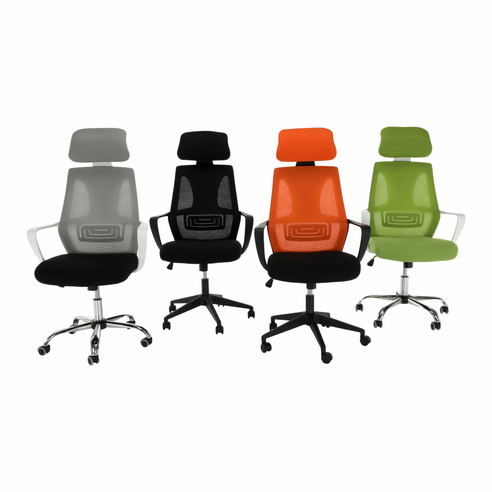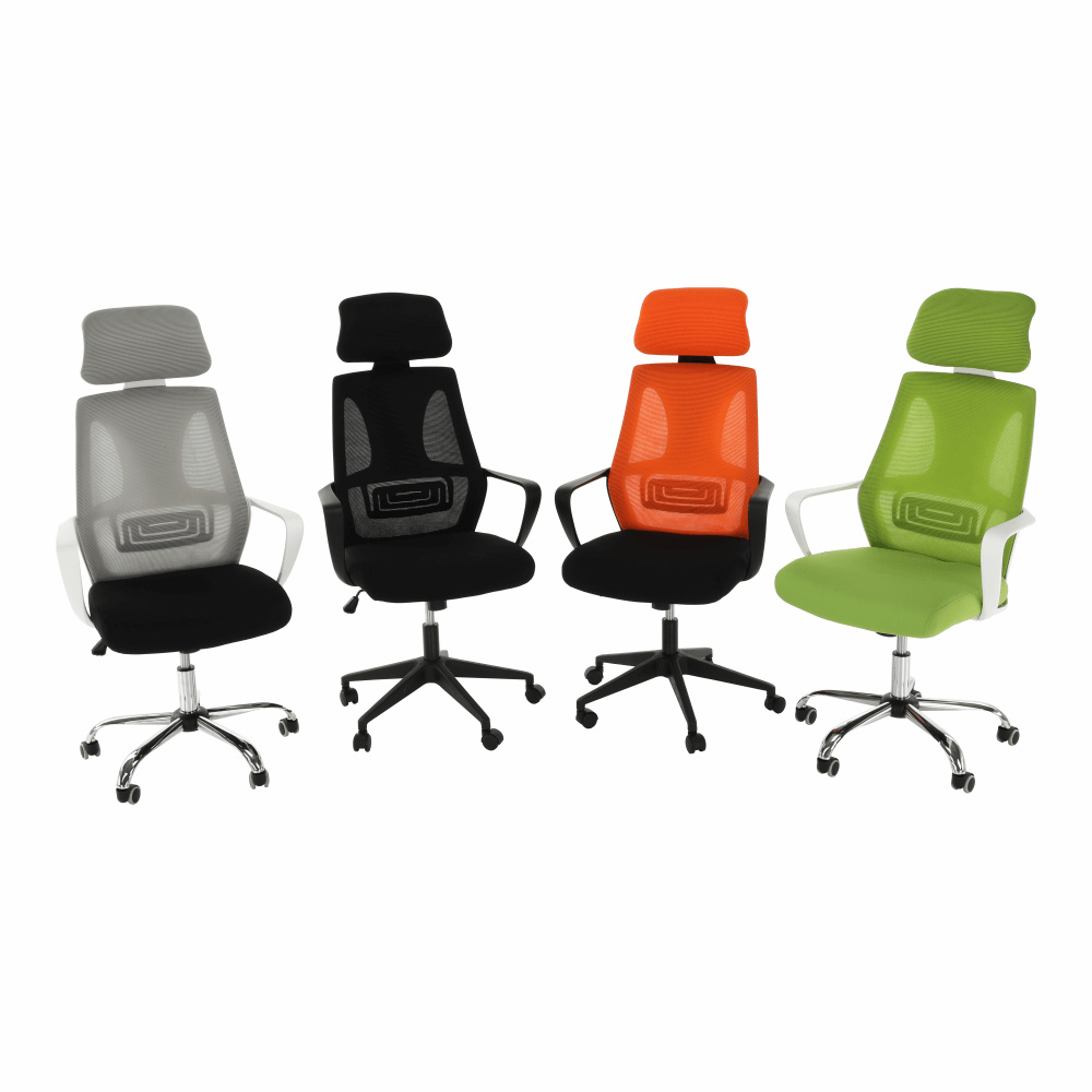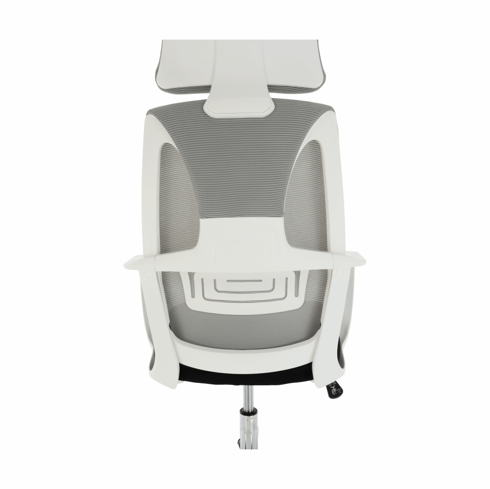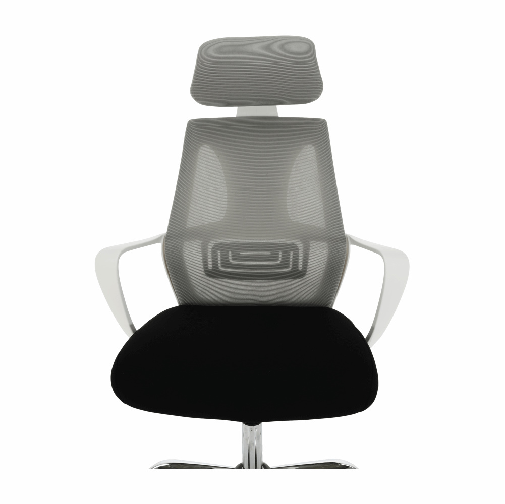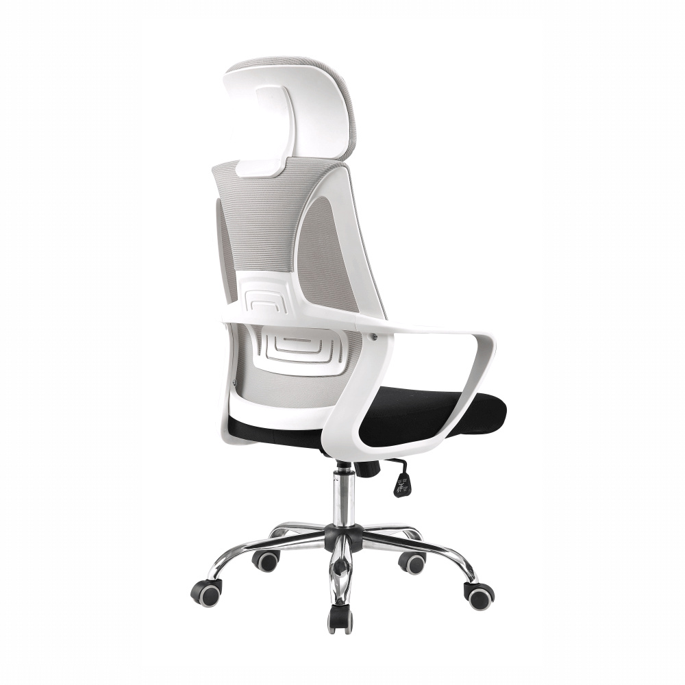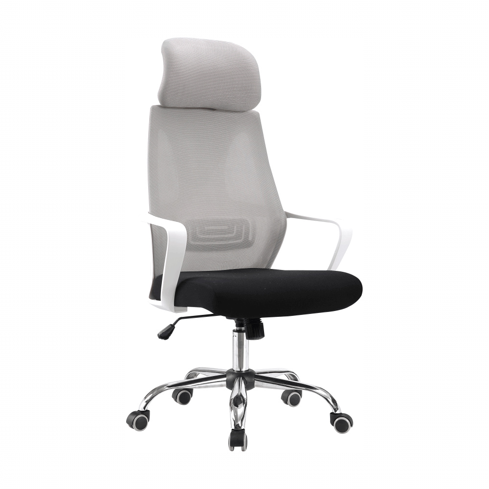 Materiál: látka / plast / kov Oděruodolnost textilie podle testu Martindale: 90 000 oděrek Barva: šedá / černá / bílá Rozměry (ŠxHxV): 64x63x118-126 cm Nastavitelná výška sedu: 45-53 cm Hloubka sedu: 52 cm Šířka sedu: 50 cm Výška zádové opěrky: 76-79,5 cm Šířka zádové opěrky: 49 cm Nosnost: 110 kg S opěrkou hlavy S područkami mechanismus houpání chromová podstava Univerzální kolečka vhodná pro měkké i tvrdé podlahy Dodávané v demontu