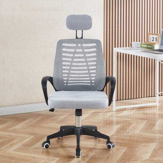 Materiál: síťovina/plast Oděruodolnost textilie podle testu Martindale: 100 000 oděrů Barva: šedá/černá Rozměry (ŠxHxV): 61x60x106-116 cm Výška sedu: 43-53 cm Šířka sedu: 48 cm Hloubka sedu: 45 cm Výška zádové opěrky: 56 cm Šířka zádové opěrky: 50 cm Nosnost: 100 kg Hmotnost: 8,5 kg Nastavitelná výška sedu Výškově nastavitelná opěrka hlavy Otočná Mechanismus houpání Univerzální kolečka Vhodné pro tvrdé i měkké podlahy Pětiramenná podstava Dodáváno v demontu