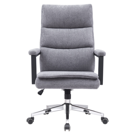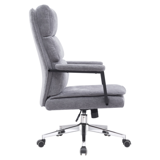 Materiál: látka/kov Oděruodolnost textilie podle testu Martindale: 80 000 oděrů Barva: šedá/chrom Rozměry (ŠxHxV): 65x72x104/110 cm Výška sedu: 47/53 cm Hloubka sedu: 46 cm Šířka sedu: 52 cm Šířka zádové opěrky: 51 cm Výška zádové opěrky: 71 cm Nosnost: 130 kg Hmotnost: 15,7 kg S čaluněnými opěrkami na ruce Otočné Možnost nastavit výšku sedu Mechanismus houpání Pětiramenná chromová podstava Univerzální kolečka Vhodné pro měkké i tvrdé podlahy Dodáváno v demontu