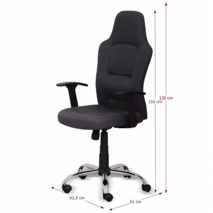 Materiál: látka/plast/kov Oděruodolnost textilie podle testu Martindale: 90 000 oděrů Barva: šedá/černá Rozměry (ŠxHxV): 62,5x61x116-126 cm Nosnost: 110 kg Dodáváno v demontu