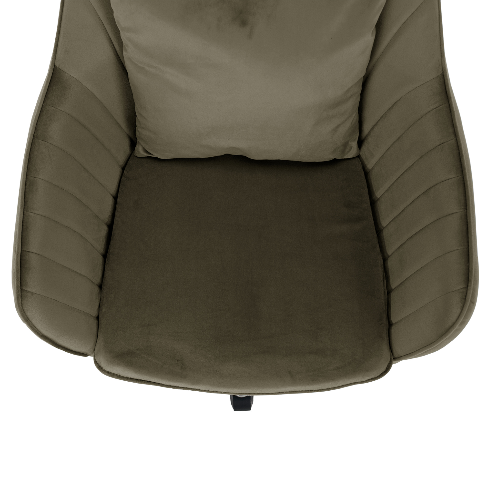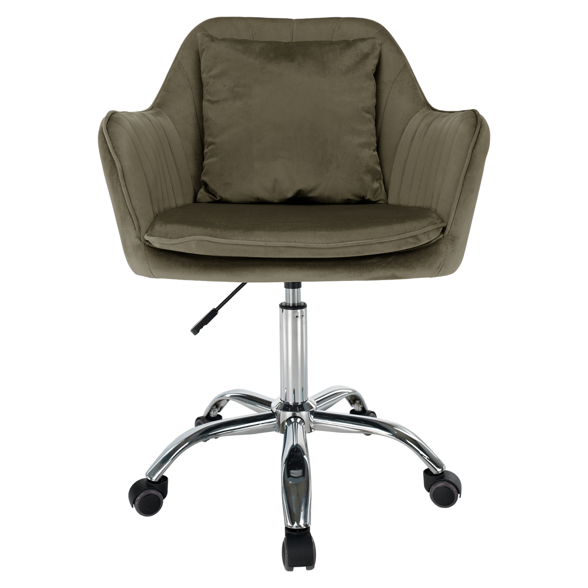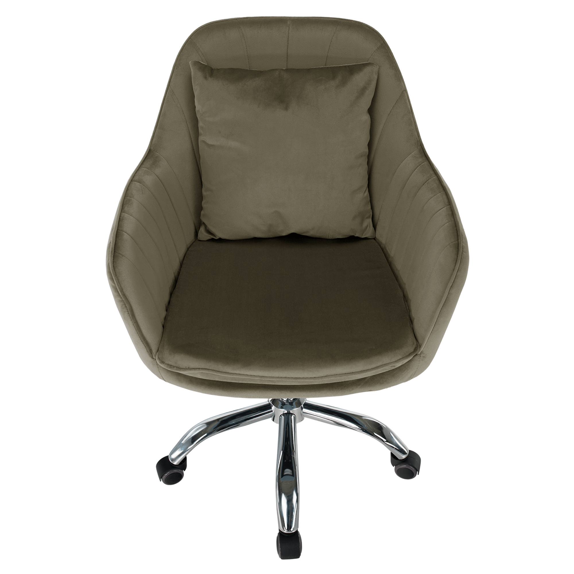 Kancelářské křeslo KLIAN Materiál: látka Velvet/chrom Oděruodolnost textilie podle testu Martindale: 85 000 oděrů Barva: šedohnědá Taupe/chrom Rozměry (ŠxHxV): 59x61x87/101 cm Šířka sedu: 42 cm Výška opěrky na ruku: 18 cm Rozměry polštáře (ŠxV): 32x32 cm Výška sedu: 50/65 cm Hloubka sedu: 48 cm Opěrka zad (ŠxV): 48x41 cm Nosnost: 100 kg S polštářem Nastavitelná výška sedu Otáčivé Univerzální kolečka jsou vhodná pro měkké i tvrdé podlahy Dodáváno v demontu
