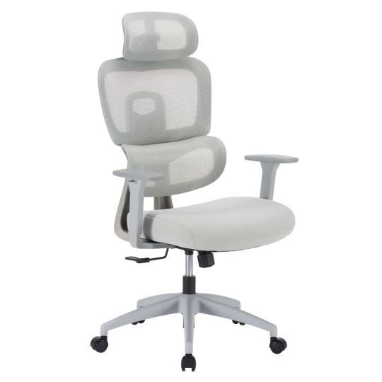 Materiál: síťovina/látka/plast Oděruodolnost síťoviny podle testu Martindale: 90 000 oděrů Oděruodolnost látky podle testu Martindale: 80 000 oděrů Barva: světle šedá/šedá Rozměry (ŠxHxV): 70x68x116-121/126-131 cm Výška sedu: 47-57 cm Hloubka sedu: 54 cm Šířka sedu: 52 cm Šířka zádové opěrky: 53 cm Výška zádové opěrky: 61-66 cm Nosnost: 150 kg Otočná židle Funkce houpání Nastavitelná výška sedu Dynamická bederní opěrka Nastavitelná výška zádové opěrky 3 pozice nastavení výšky zádové opěrky Nastavitelný úhel opěrky hlavy Výškově nastavitelné opěrky na ruce Pohodlné a měkké sedátko Univerzální kolečka Kolečka jsou vhodná pro měkké i tvrdé podlahy Praktická Ergonomické vlastnosti Dodáváno v demontu