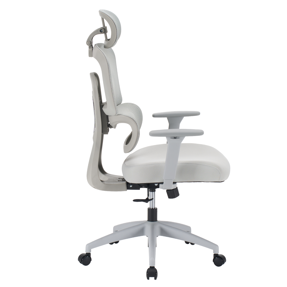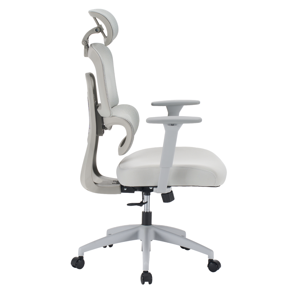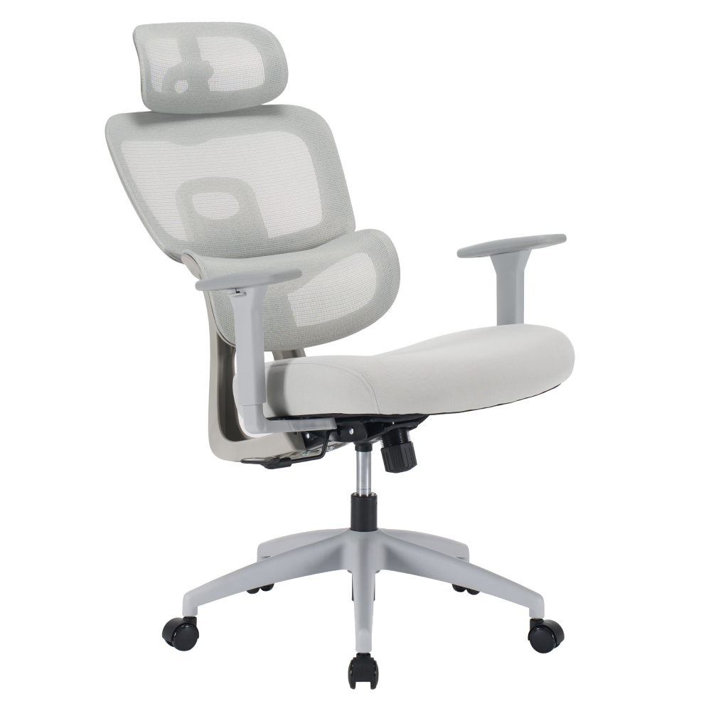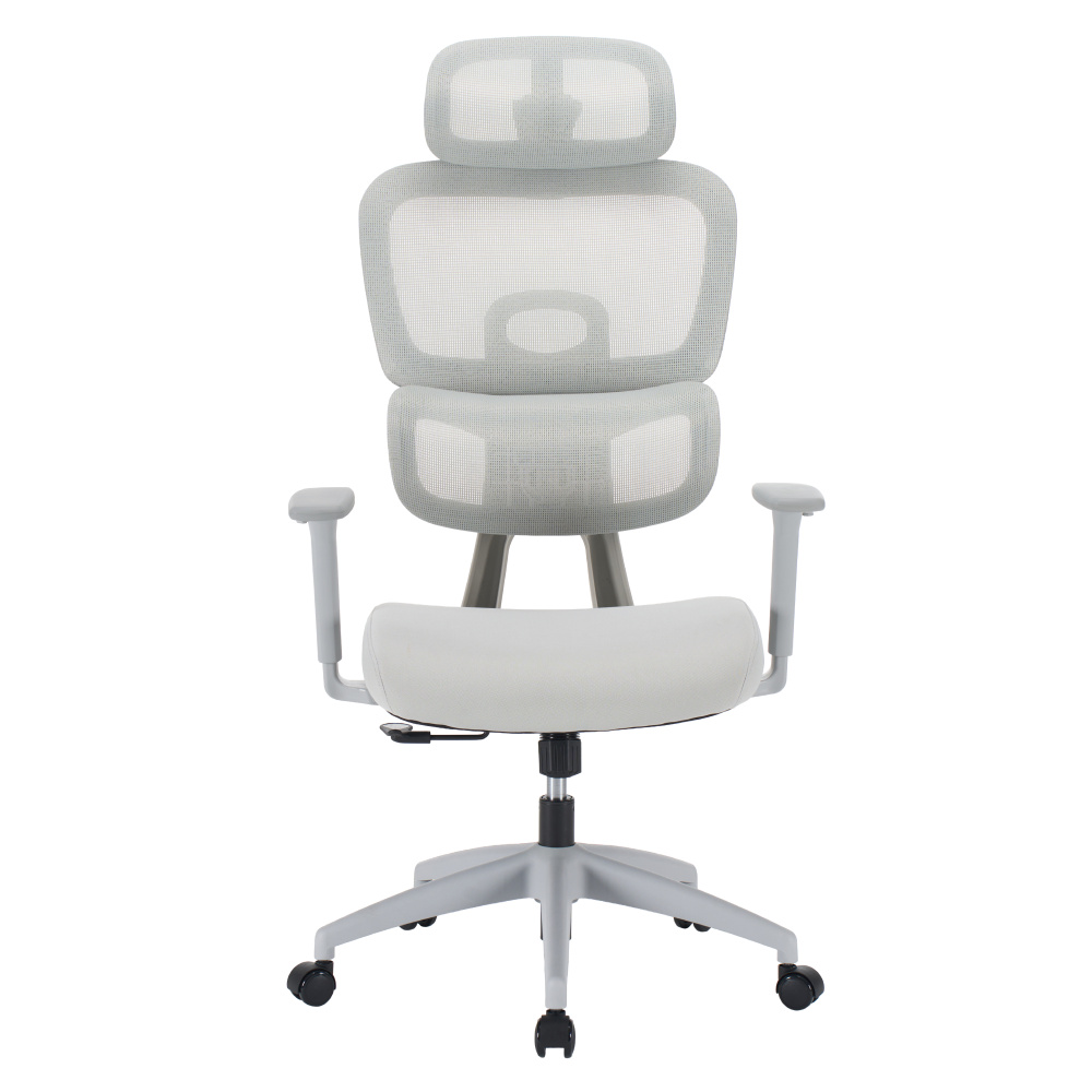 Materiál: síťovina/látka/plast Oděruodolnost síťoviny podle testu Martindale: 90 000 oděrů Oděruodolnost látky podle testu Martindale: 80 000 oděrů Barva: světle šedá/šedá Rozměry (ŠxHxV): 70x68x116-121/126-131 cm Výška sedu: 47-57 cm Hloubka sedu: 54 cm Šířka sedu: 52 cm Šířka zádové opěrky: 53 cm Výška zádové opěrky: 61-66 cm Nosnost: 150 kg Otočná židle Funkce houpání Nastavitelná výška sedu Dynamická bederní opěrka Nastavitelná výška zádové opěrky 3 pozice nastavení výšky zádové opěrky Nastavitelný úhel opěrky hlavy Výškově nastavitelné opěrky na ruce Pohodlné a měkké sedátko Univerzální kolečka Kolečka jsou vhodná pro měkké i tvrdé podlahy Praktická Ergonomické vlastnosti Dodáváno v demontu