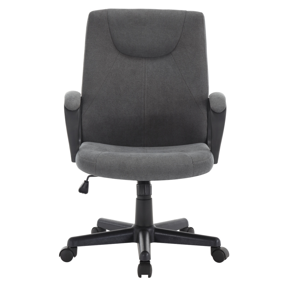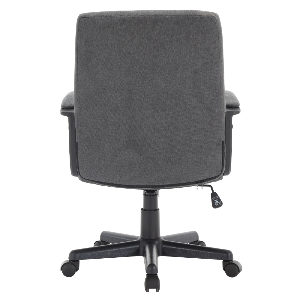 Materiál: látka/plast Oděruodolnost textilie podle testu Martindale: 80 000 oděrů Barva: tmavě šedá/černá Rozměry (ŠxHxV): 60,5x66x94-104 cm Výška sedu: 43-53 cm Šířka sedu: 49 cm Hloubka sedu: 48 cm Výška zádové opěrky: 58 cm Šířka zádové opěrky: 49 cm Nosnost: 100 kg Hmotnost: 10,8 kg Nastavitelná výška sedu Otočná Mechanismus houpání S kolečky Čalouněné opěrky na ruce Kancelářské Dodáváno v demontu