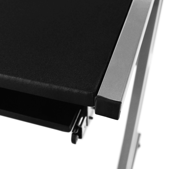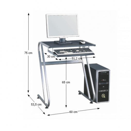 PC stůl s výsuvem na klávesnici, materiál: kov + MDF, provedení: černá + stříbrná, rozměry ŠxHxV: 60x53,5x75 cm. Tloušťka materiálu: 15 mm