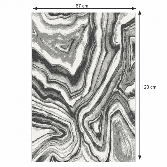 Materiál: 100% polypropylen Barva: bílá / černá / vzor Rozměry (ŠxD): 67x120 cm Výška vlasu: 0,6 cm Gramáž: 1300g / m2 Tloušťka koberce: 0,8 cm Vhodný na podlahové topení Neperte v pračce Nebieľte nečistěte chemicky Nesušte v sušičce nežehlete Dodávané v monte