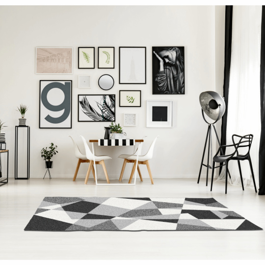 Materiál: 100% polypropylen Barva: černá / šedá / bílá Vzor: geometricky Rozměry (ŠxD): 100x150 cm Výška vlasu: 0,6 cm Gramáž: 1300g / m2 Tloušťka koberce: 0,8 cm Vhodný na podlahové topení Neperte v pračce Nebieľte nečistěte chemicky Nesušte v sušičce nežehlete Dodávané v monte